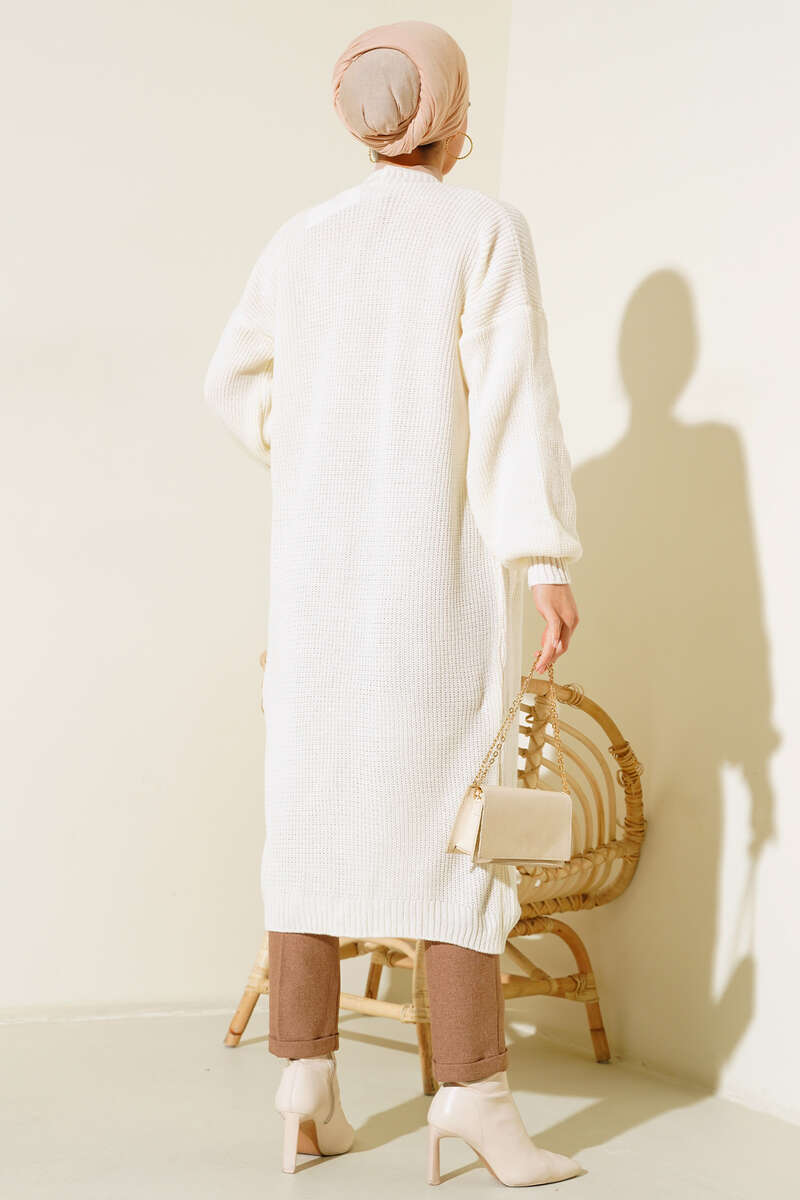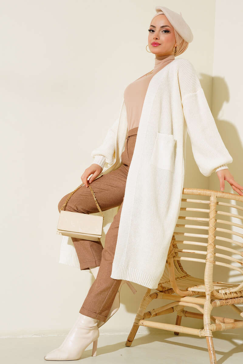 Yeni sezon triko hırka modelimizi çok seveceksiniz. Uzun boy olan hırkamız balon kol modeli ile şıklık kazanmıştır. İki adet cebi olan hırka modelimiz düşük omuzludur. Kol bilekleri esneyen lastiklidir.