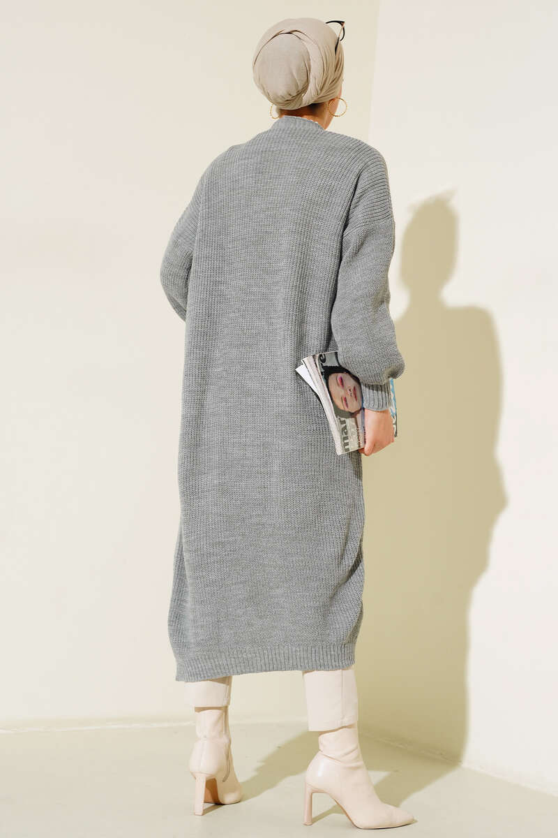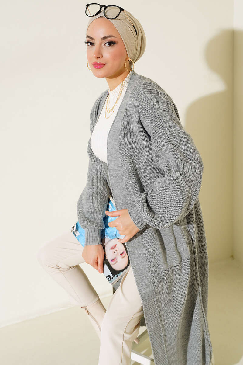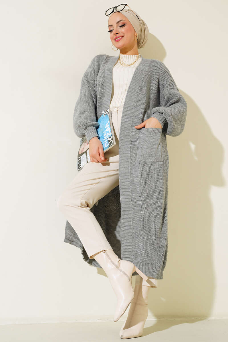 Yeni sezon triko hırka modelimizi çok seveceksiniz. Uzun boy olan hırkamız balon kol modeli ile şıklık kazanmıştır. İki adet cebi olan hırka modelimiz düşük omuzludur. Kol bilekleri esneyen lastiklidir.