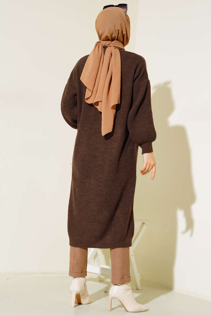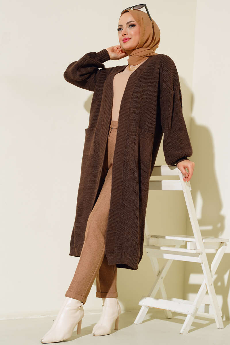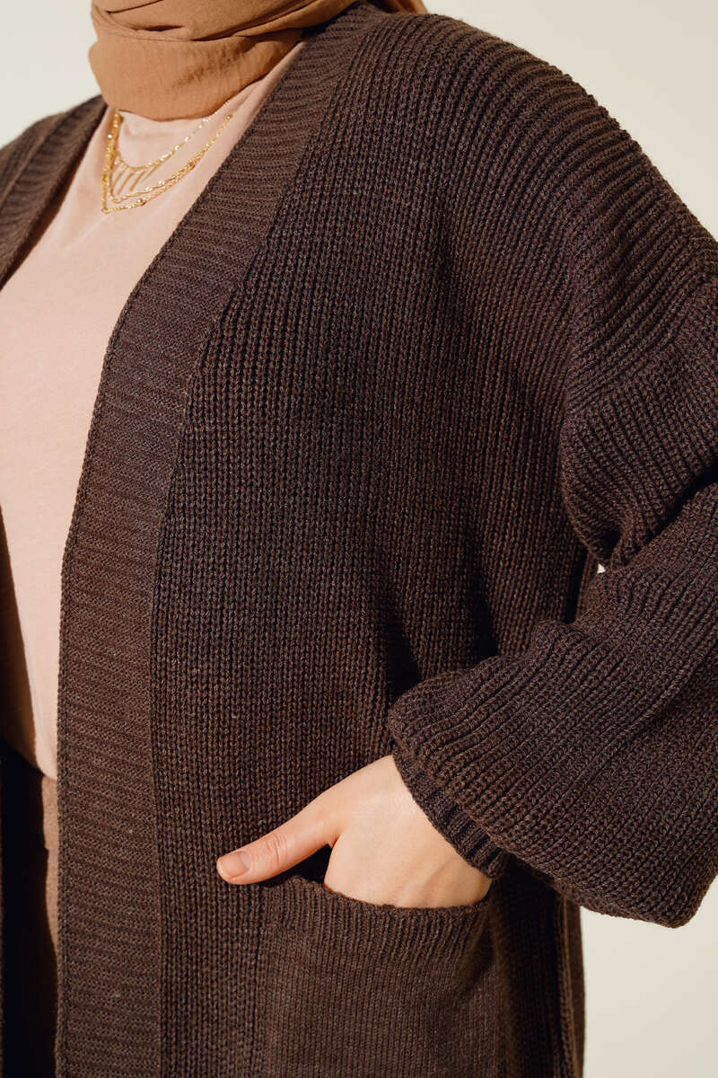 Balon Kol Triko Hırka Kahve
