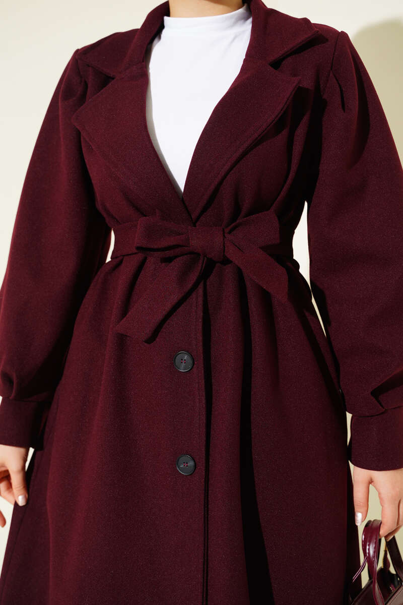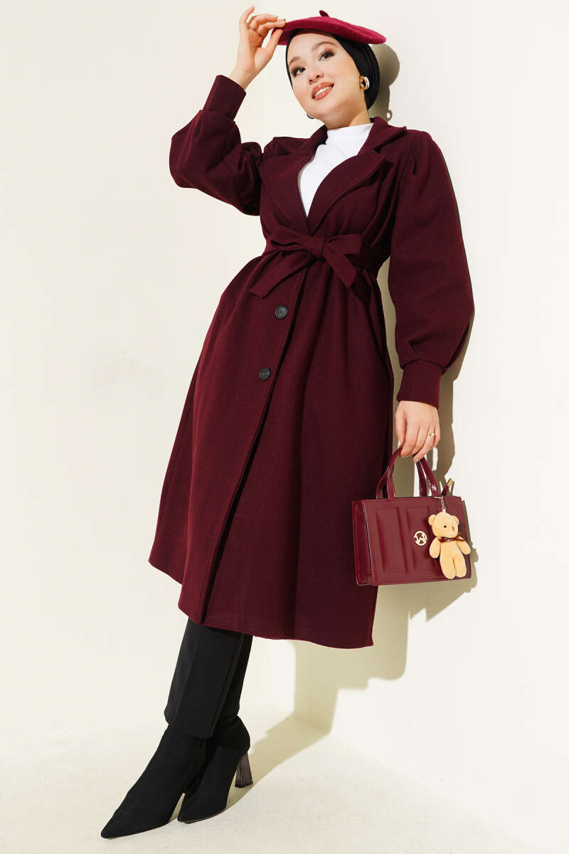 Balon Kollu Uzun Model Bordo Kaşe Kaban