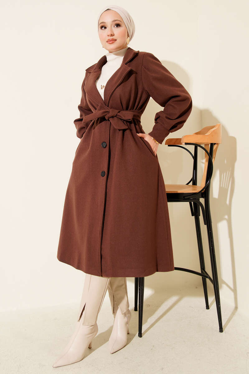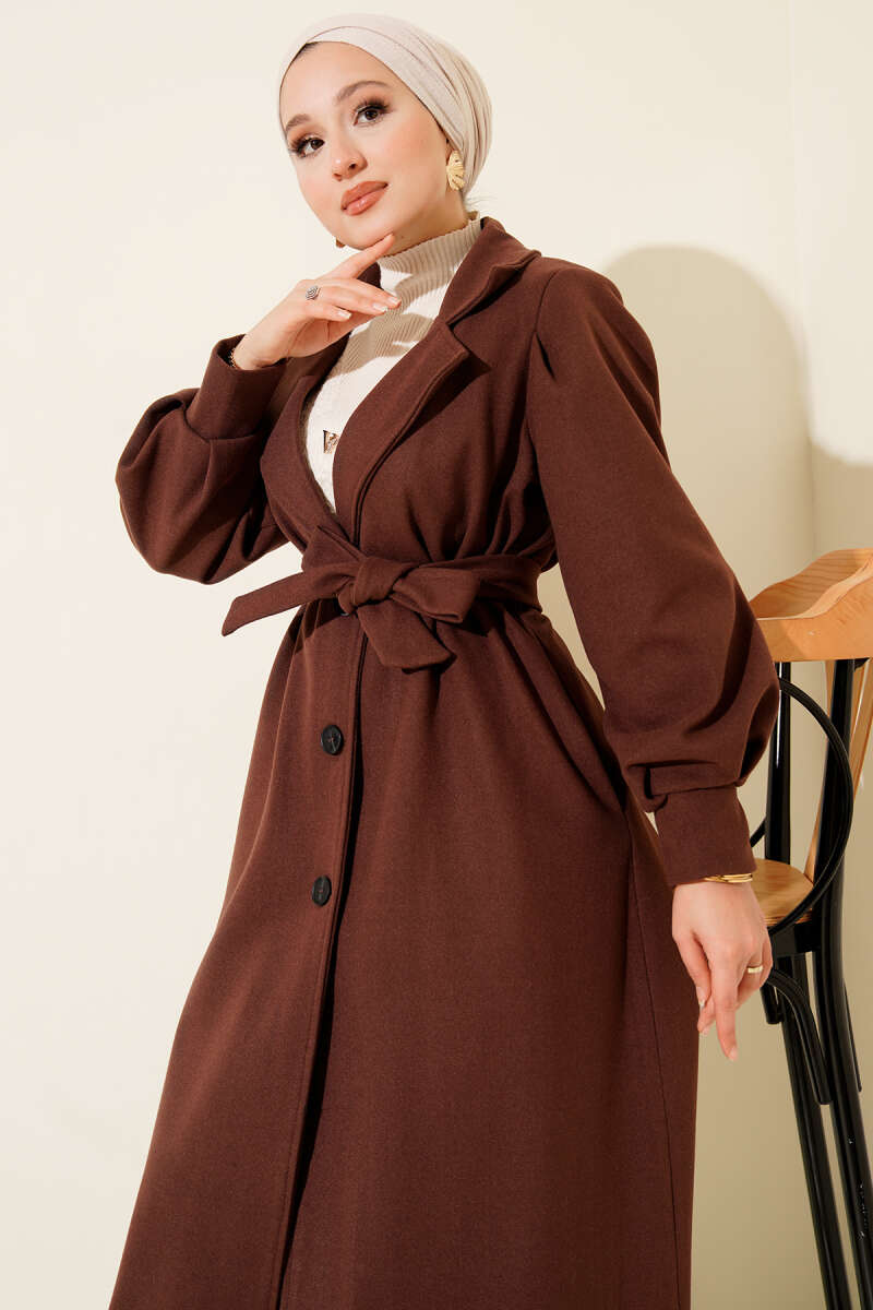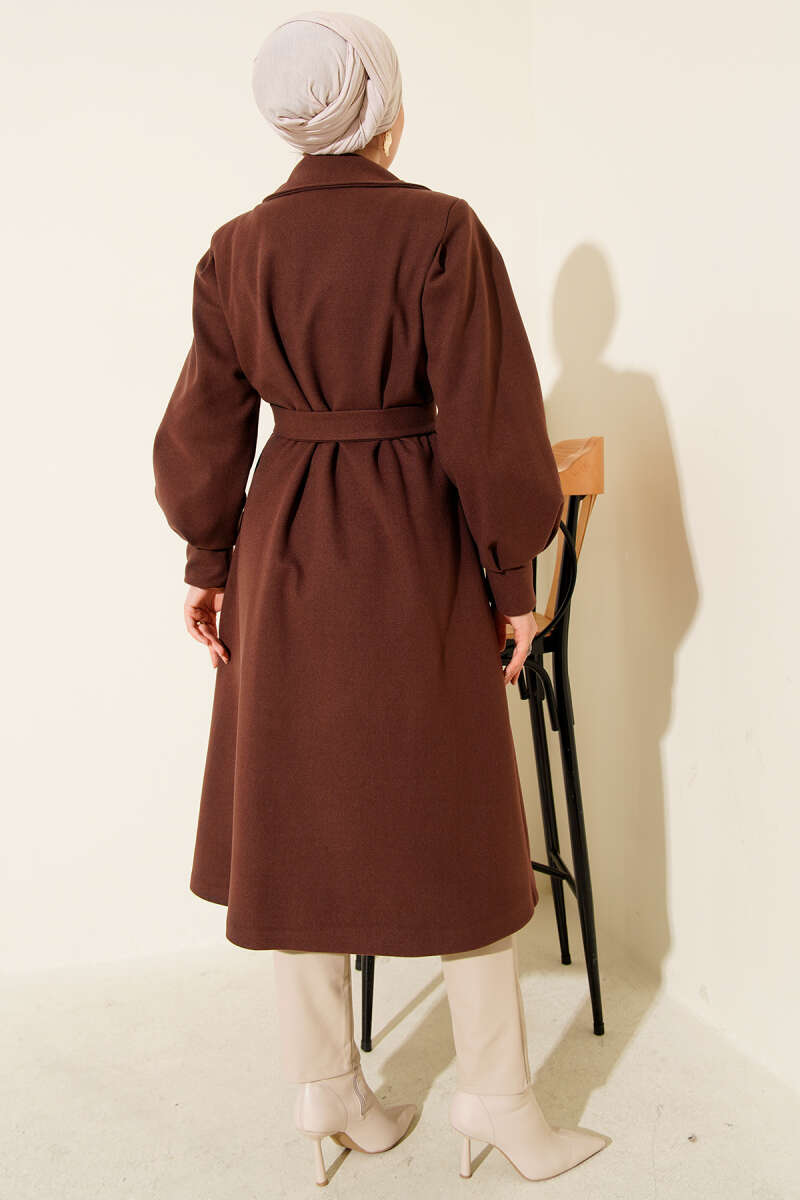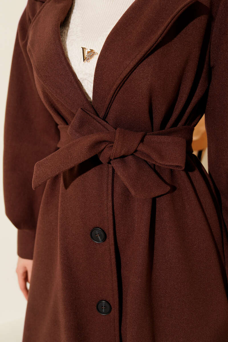 Kruvaze Yaka Kemerli Jile Elbise Kahve