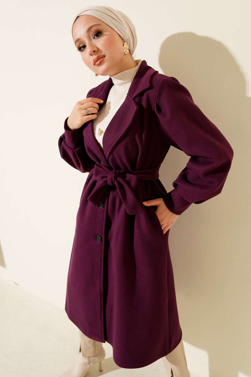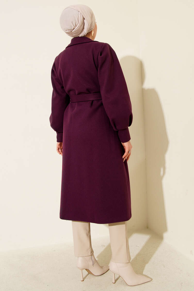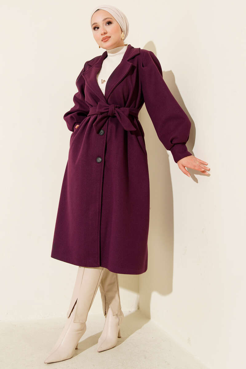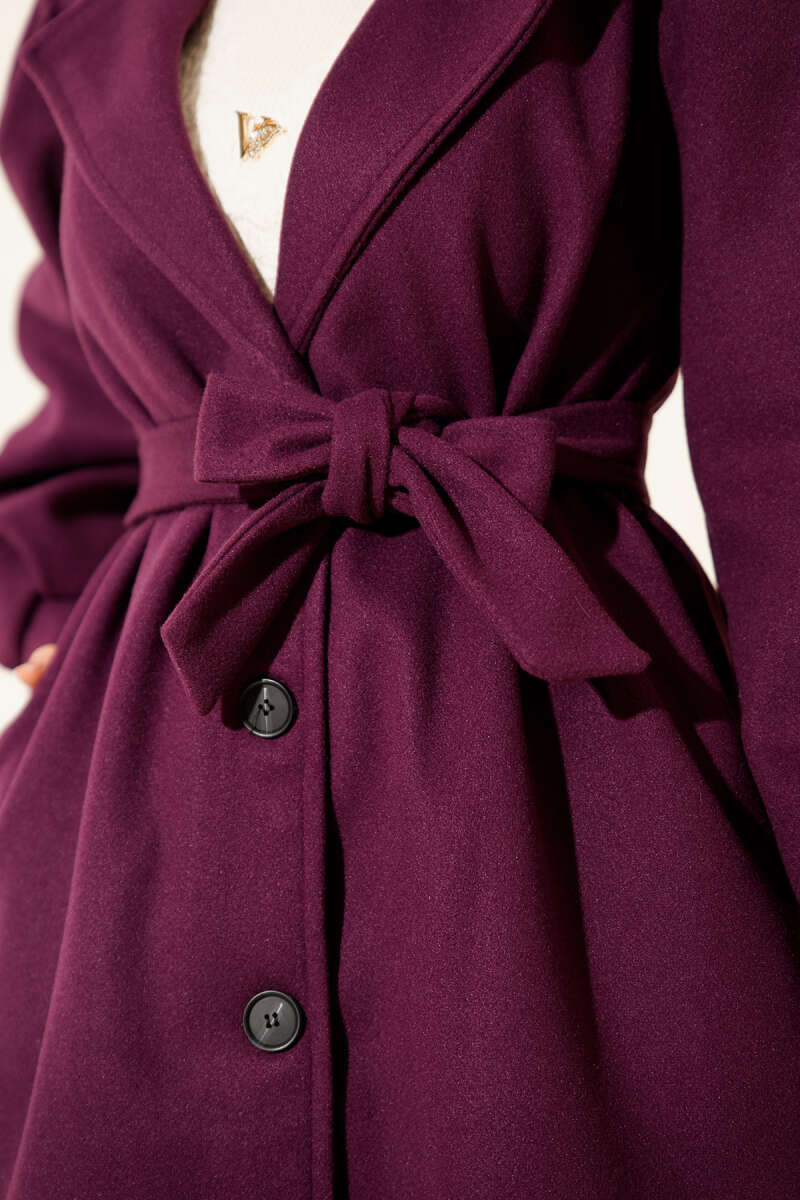 Kemerli Uzun Kaşe Kaban Bordo