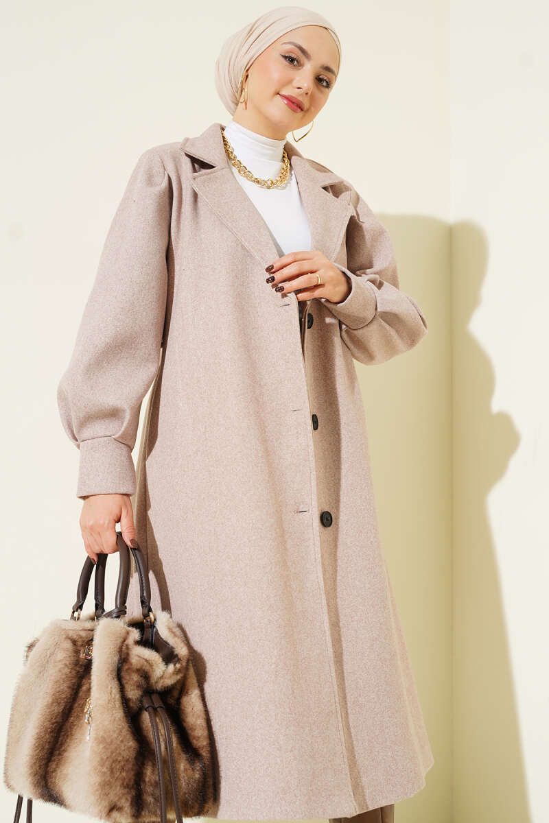 Balon Kollu Uzun Model Vizon Kaşe Kaban