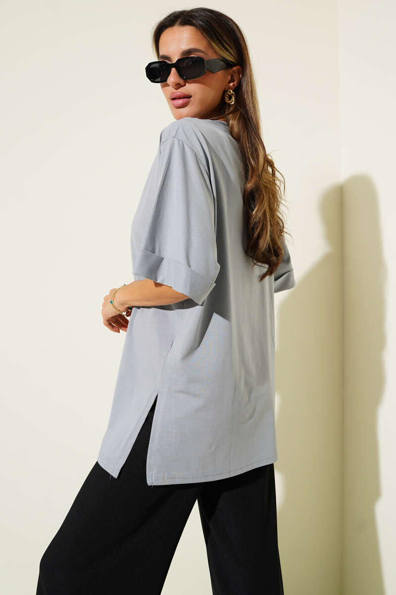 Gömlek Yaka Boy Düğmeli Tunik Petrol