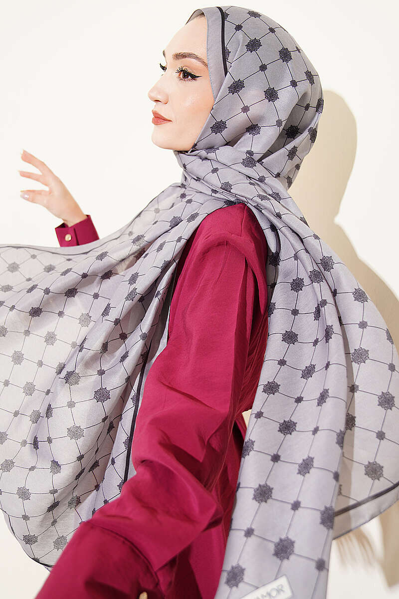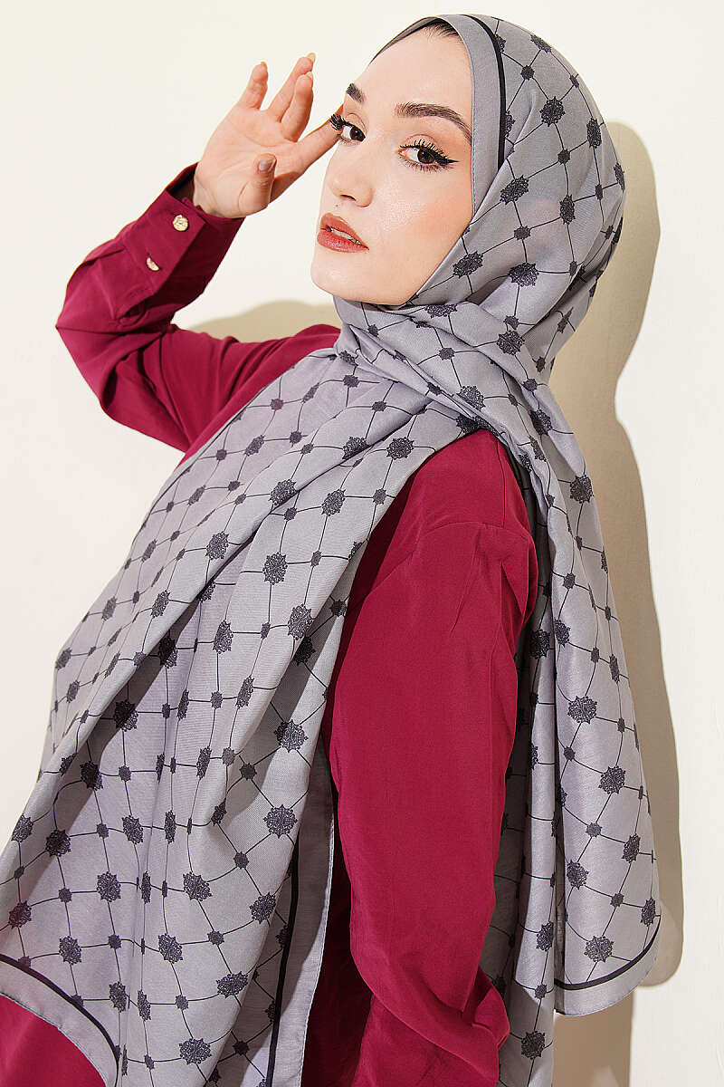 Barok Motifli Soft Şal Gri