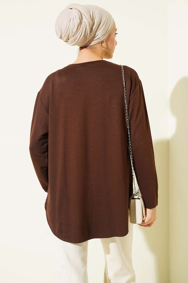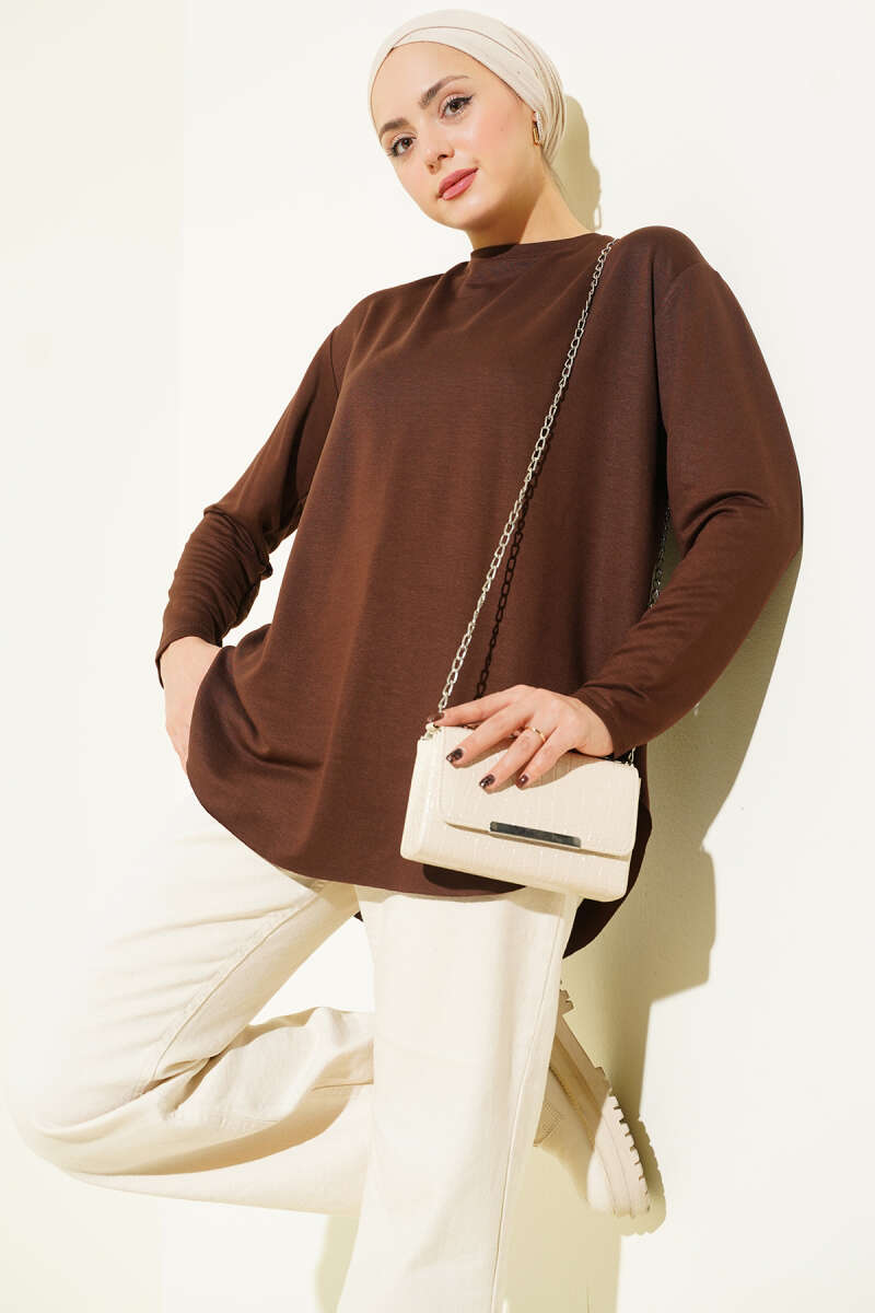Basic Alt Dikişsiz Tunik Kahve