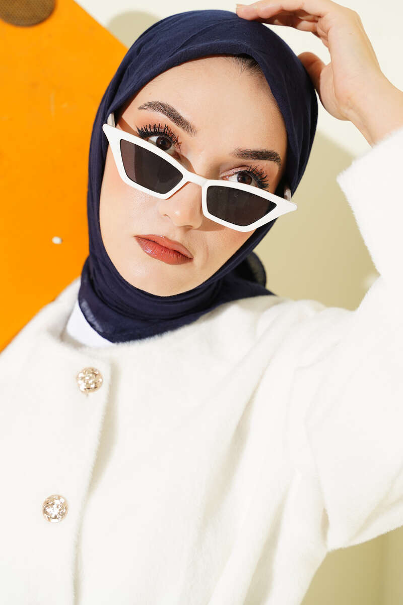 Yarım Düğmeli Hakim Yaka Müslin Elbise Lacivert