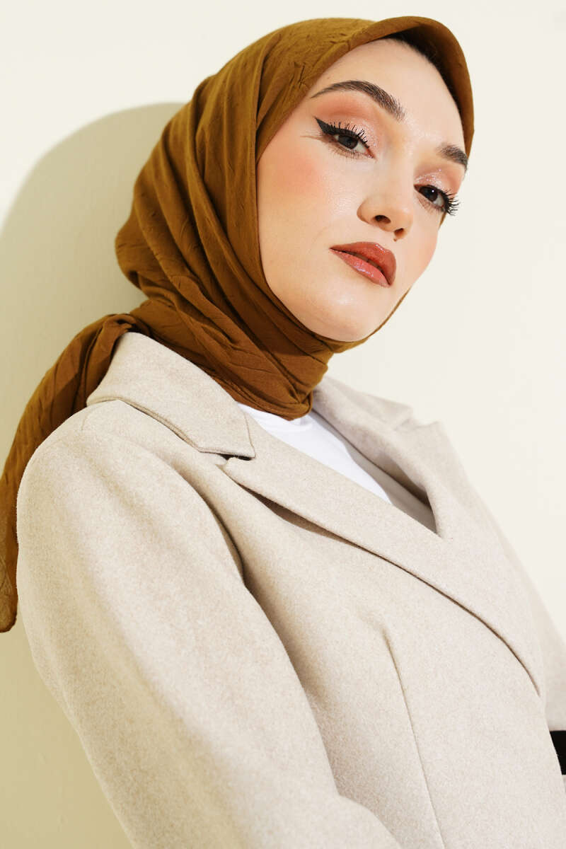 Ebruli Desen Bambu Kraş Şal Gül Kurusu