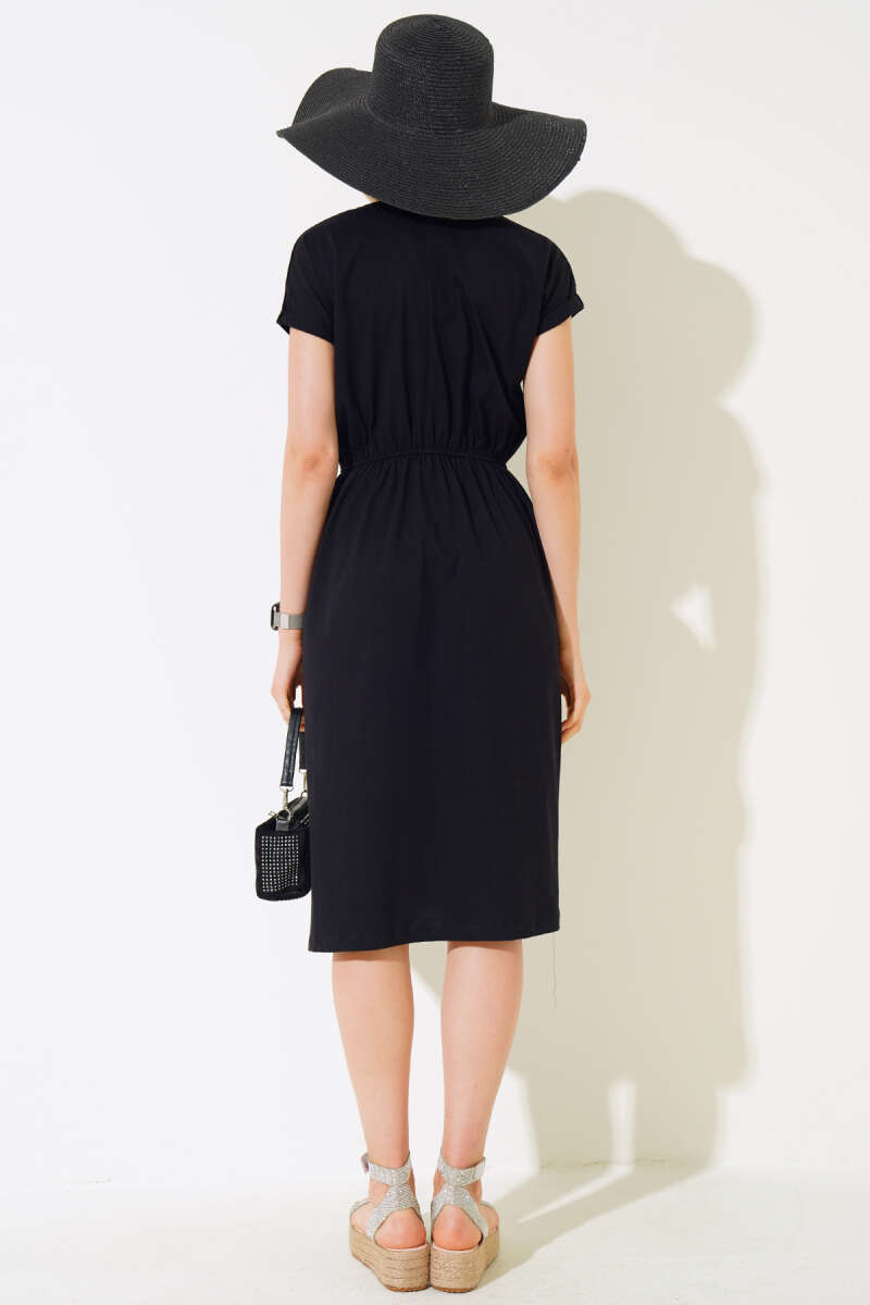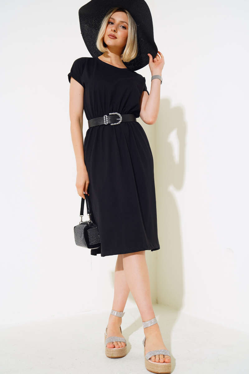 Bel Bağcıklı Bisiklet Yaka Triko Elbise Lacivert
