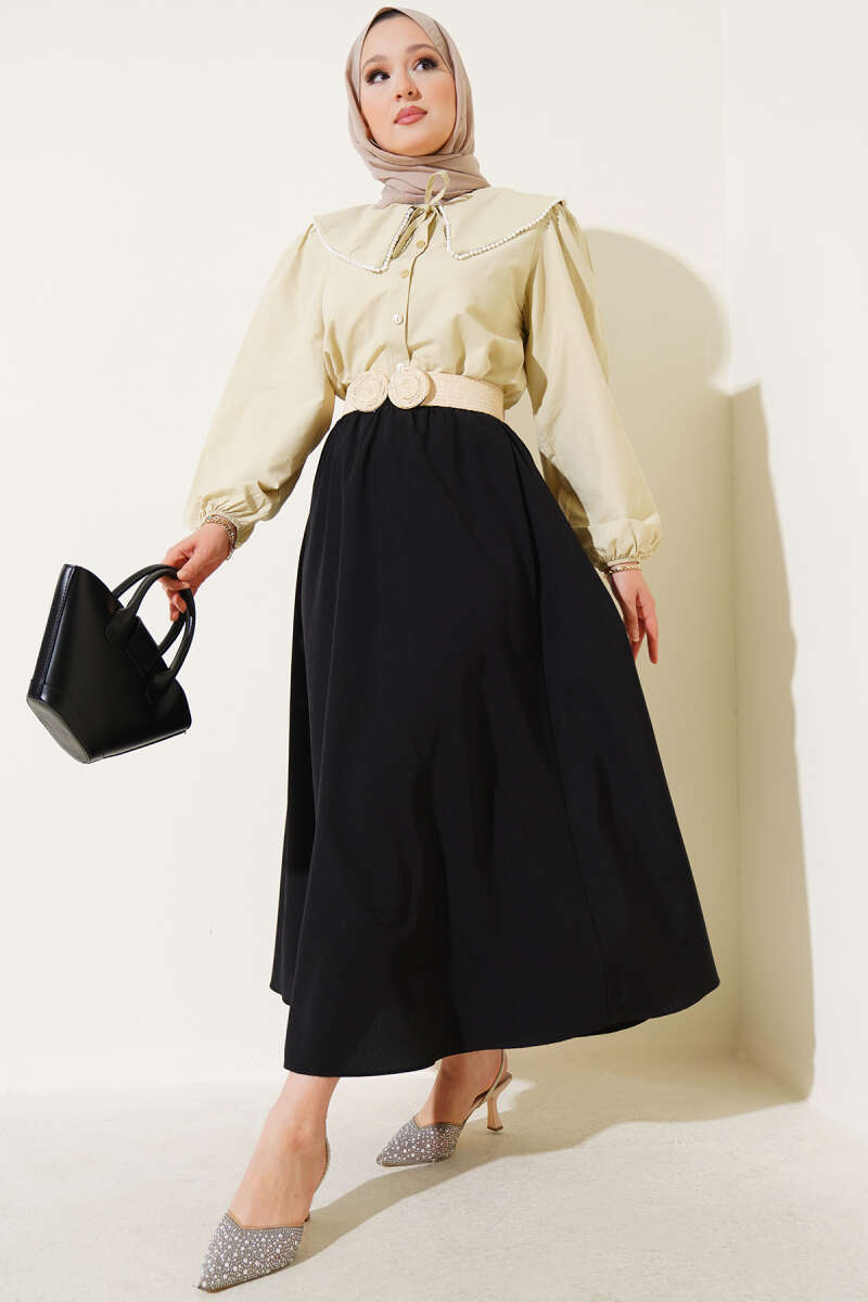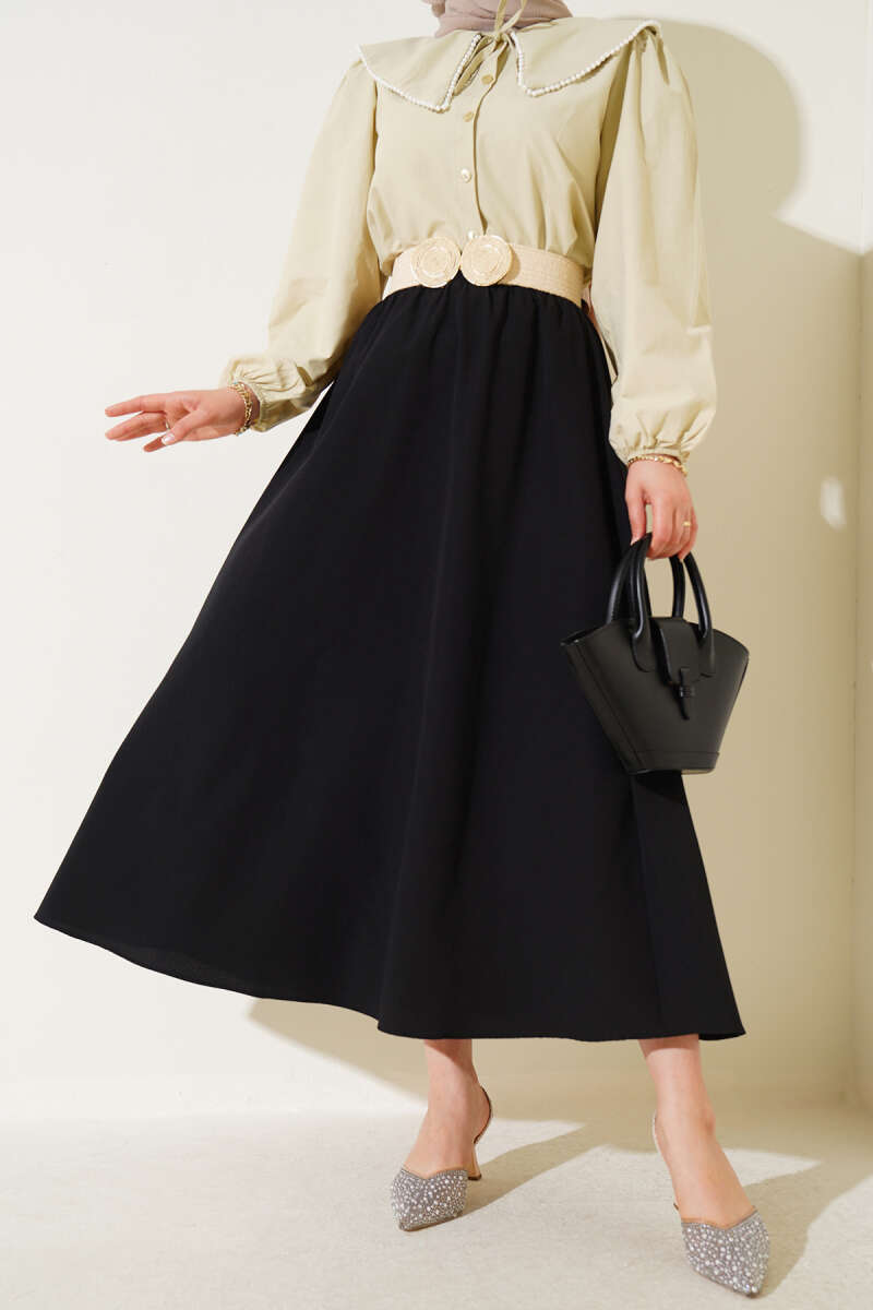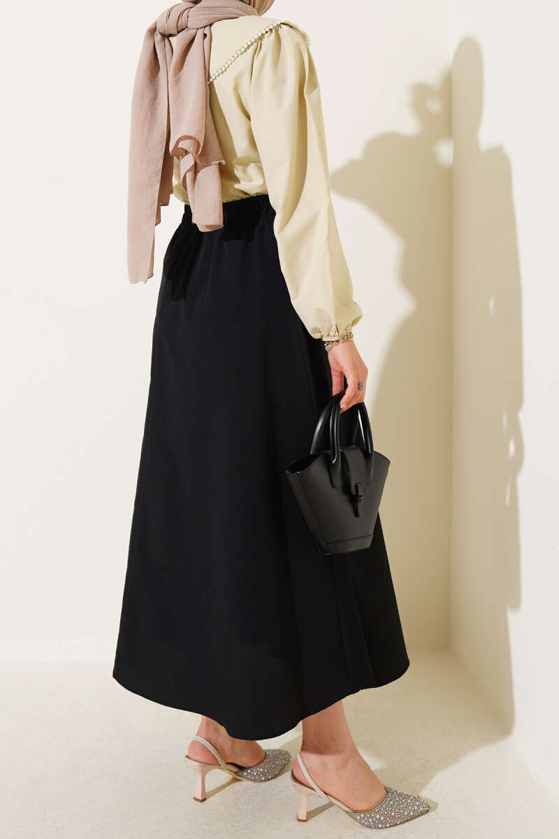Parça Detaylı Bağlamalı Scuba Etek Siyah