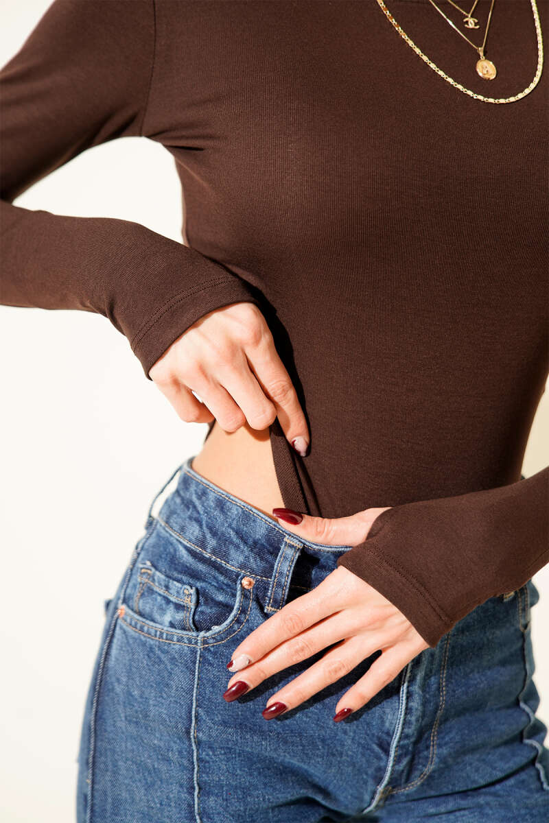 Fitilli Boğazlı Body Sütlü Kahve
