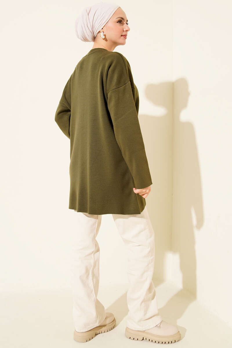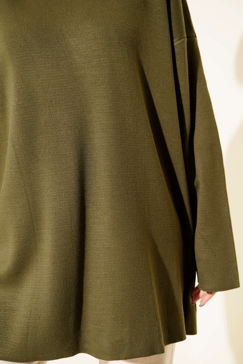 Basic Bisiklet Yaka Düz Triko Tunik Haki