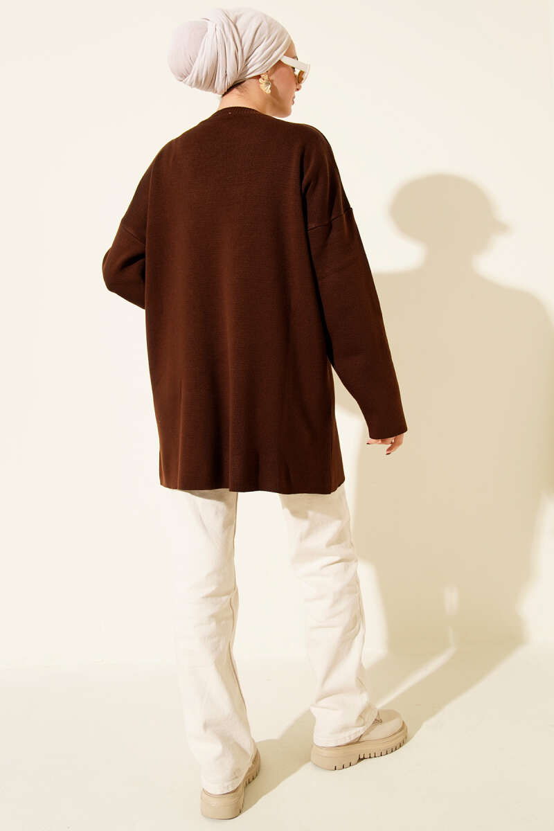Basic Bisiklet Yaka Düz Triko Tunik Kahve