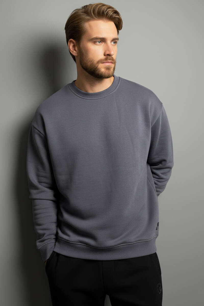 Basic Bisiklet Yaka Erkek Sweatshirt Lacivert