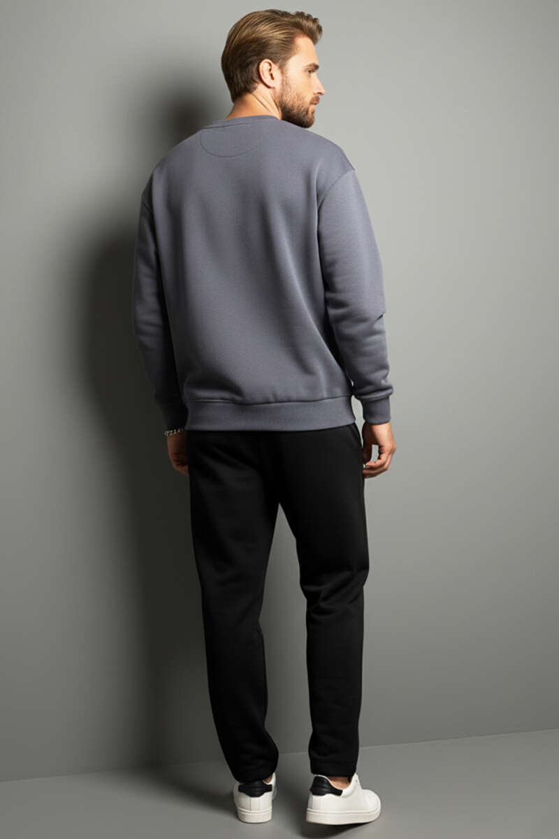 Basic Bisiklet Yaka Erkek Sweatshirt Siyah