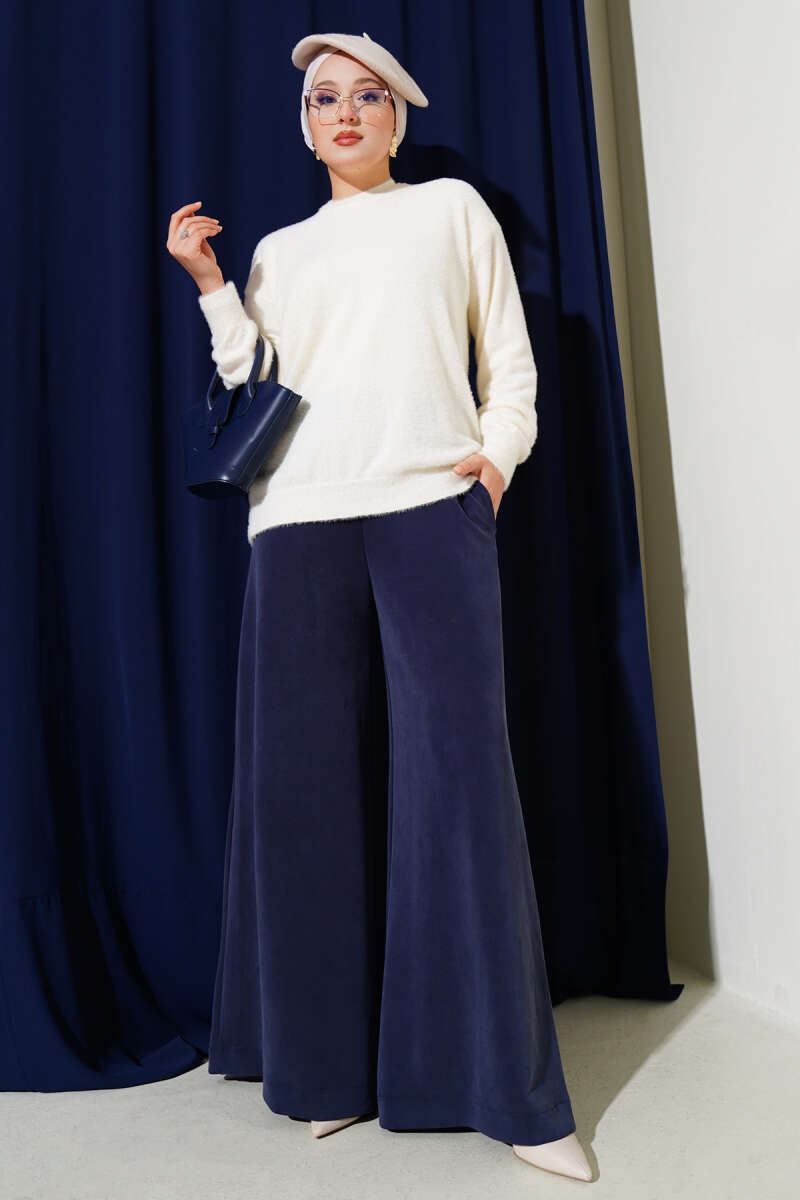 Basic Bisiklet Yaka Sakallı Kazak Mavi