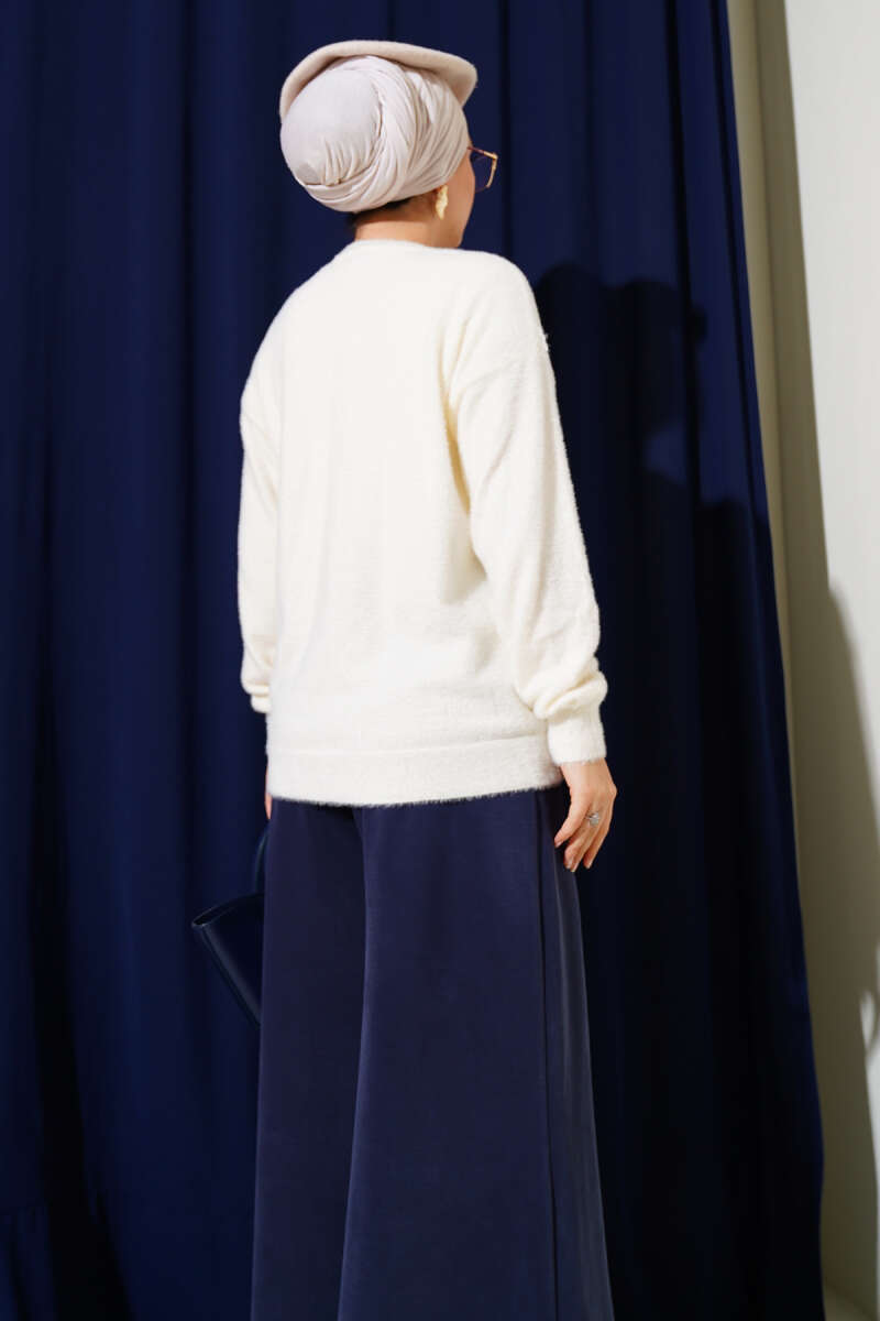 Basic Bisiklet Yaka Sakallı Kazak Ekru