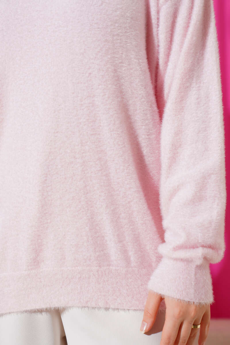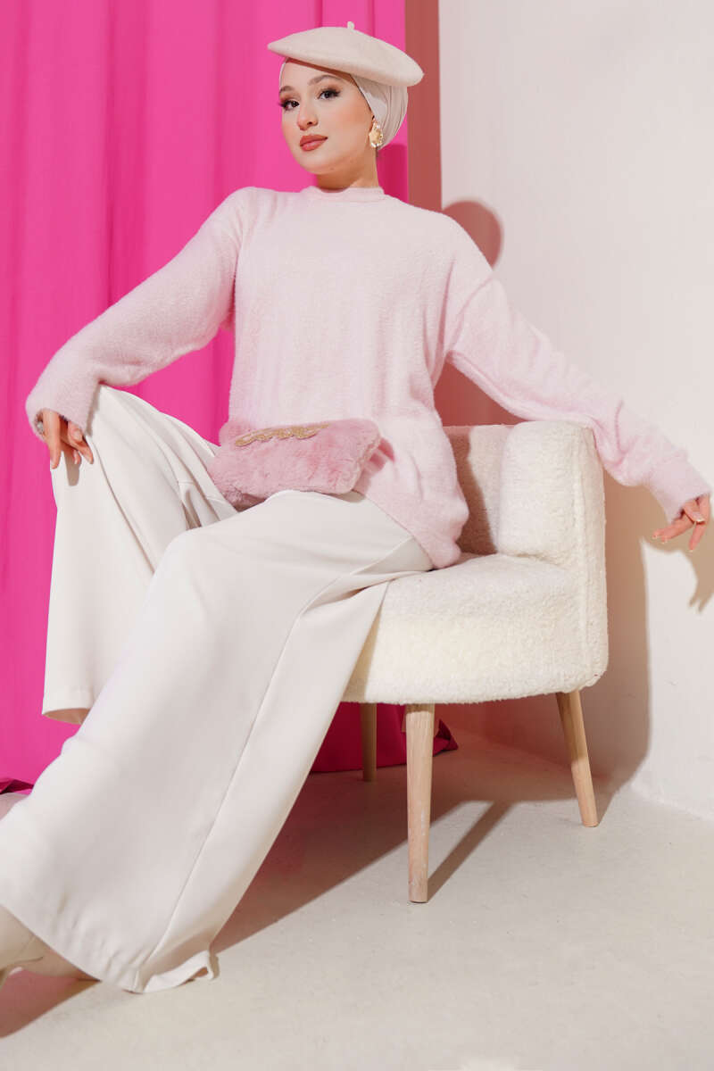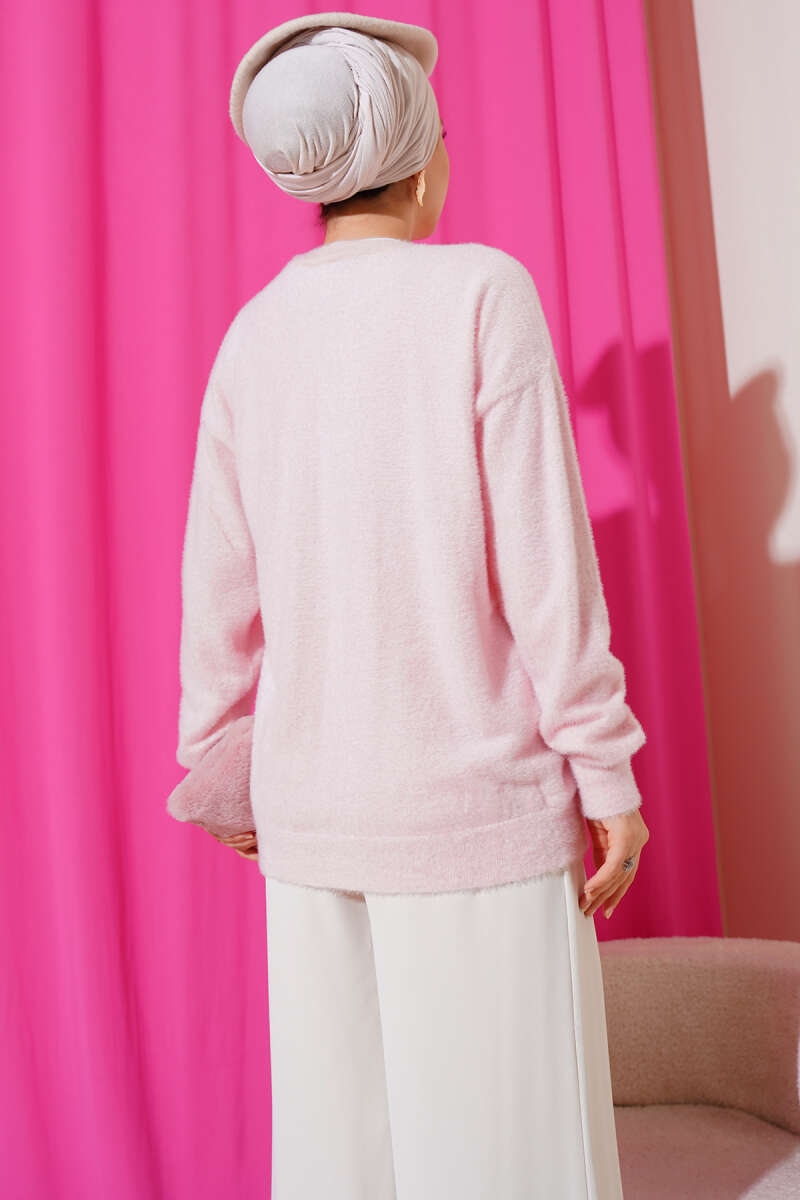 Basic Bisiklet Yaka Sakallı Kazak Pembe