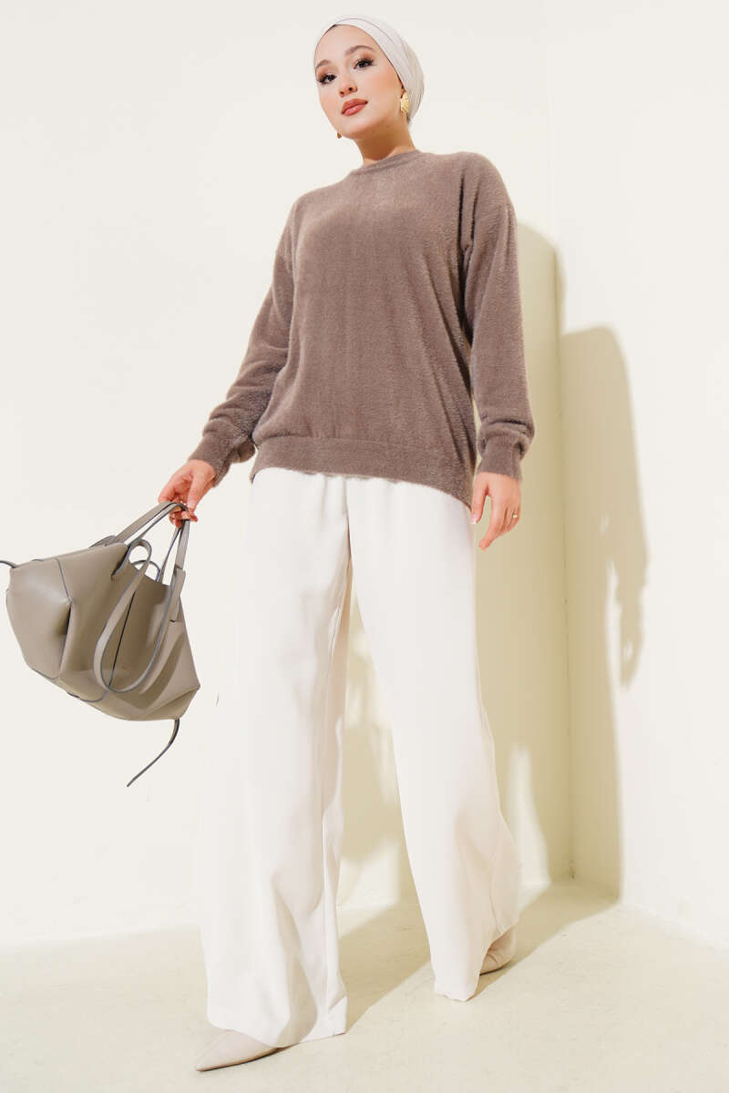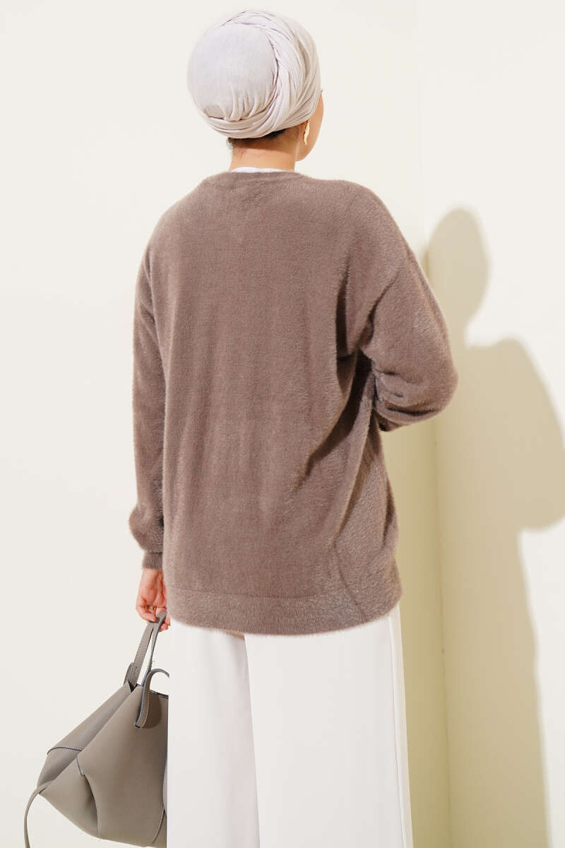 Basic Bisiklet Yaka Sakallı Kazak Vizon