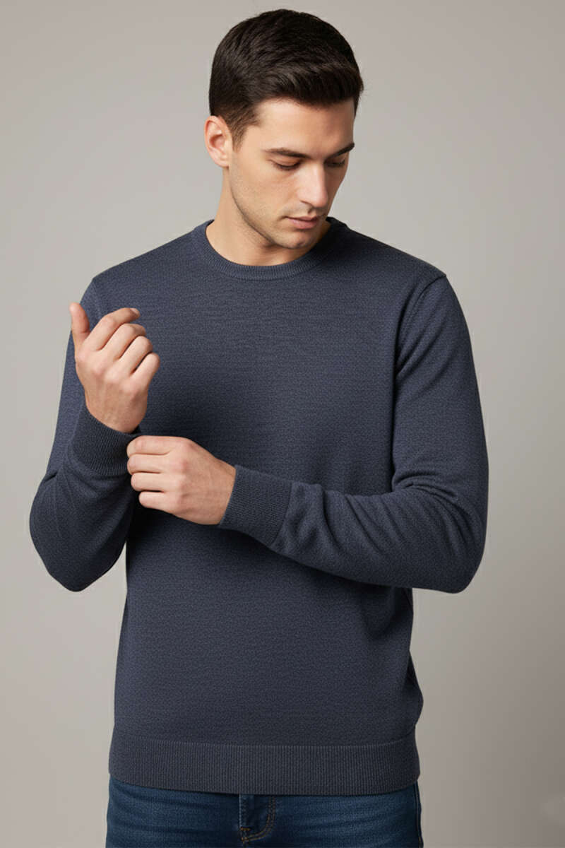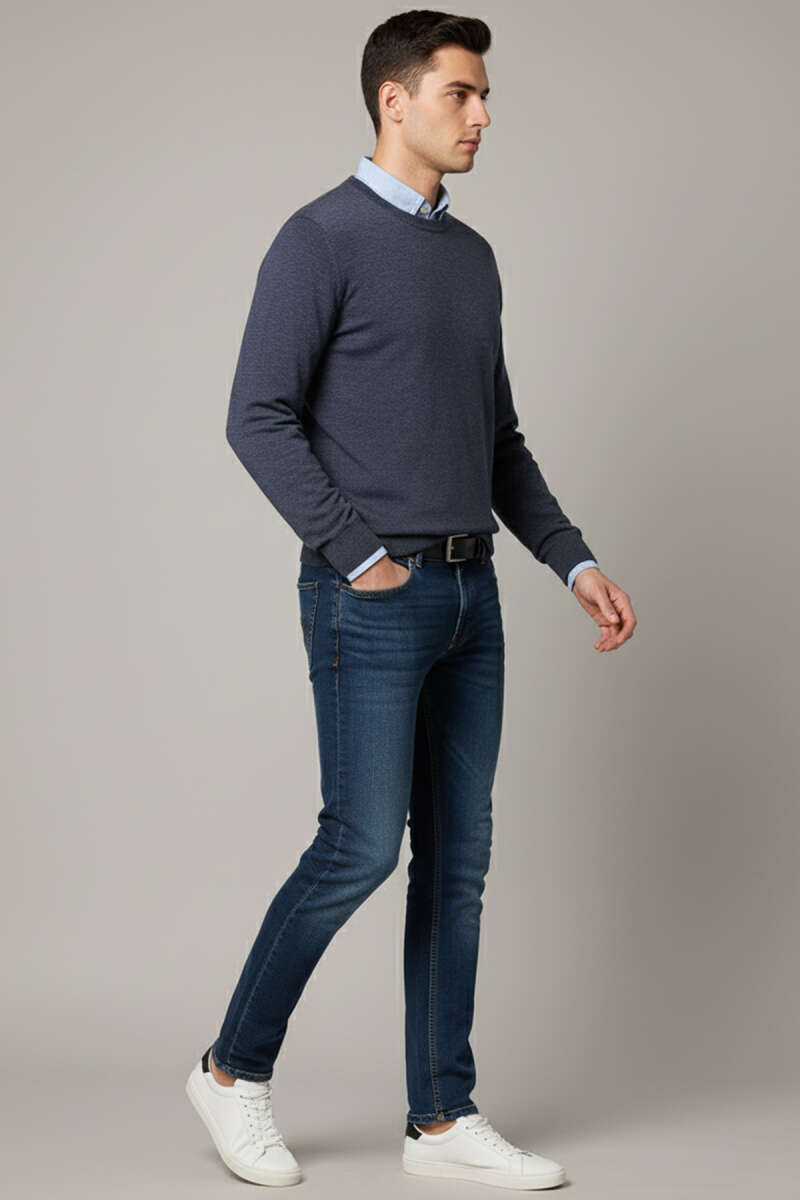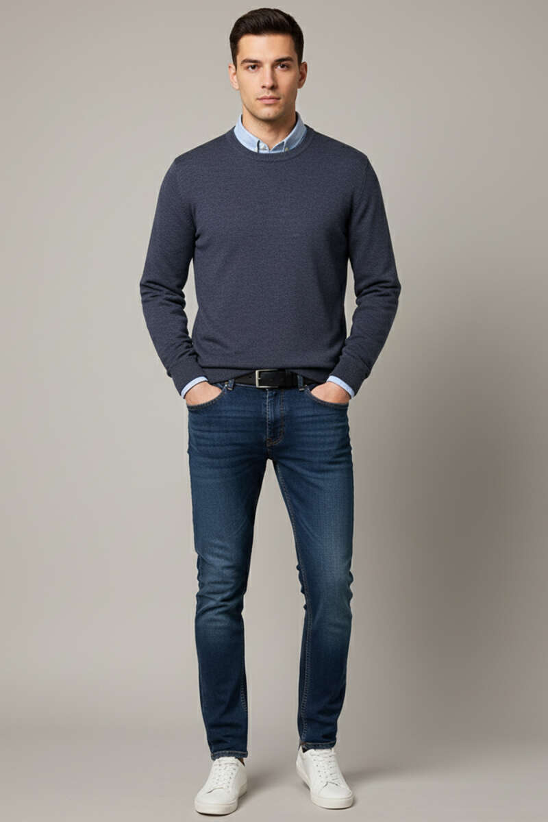 Basic Bisiklet Yaka Triko Erkek Kazak Lacivert