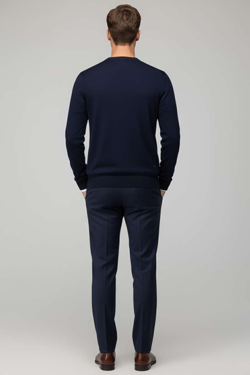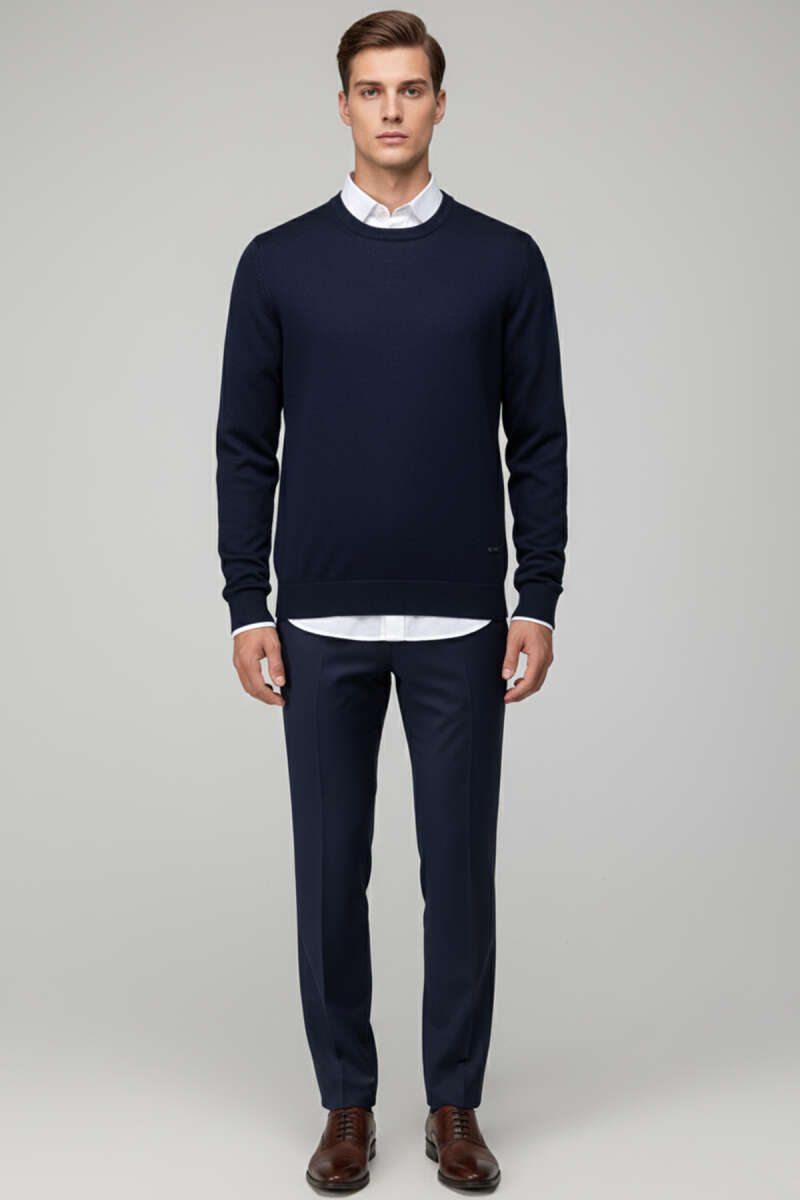 Basic Bisiklet Yaka Triko Erkek Kazak İndigo