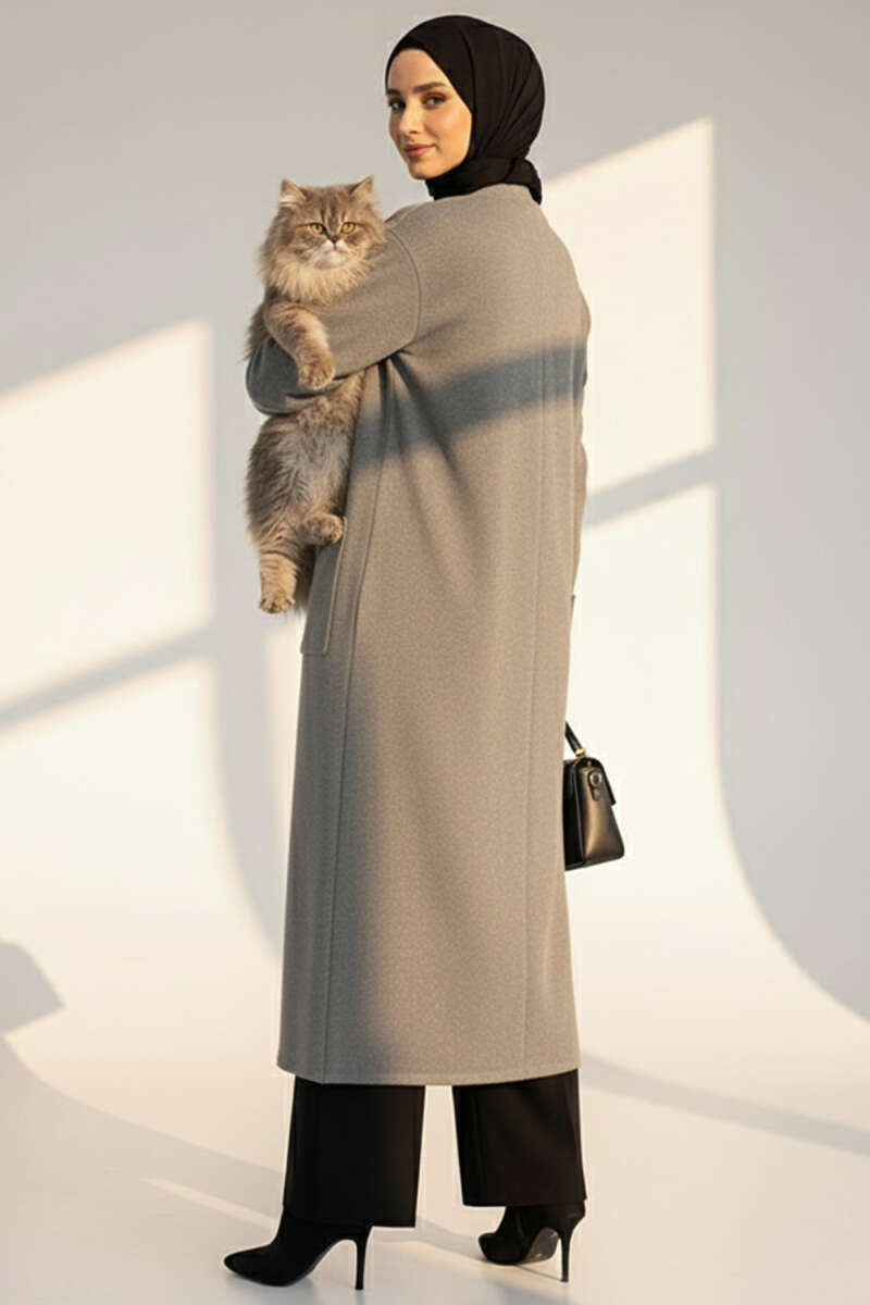 Basic Çift Cepli Uzun Triko Elbise Füme