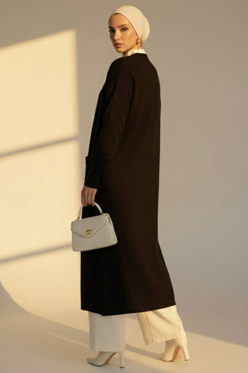 Basic Çift Cepli Uzun Triko Elbise Siyah