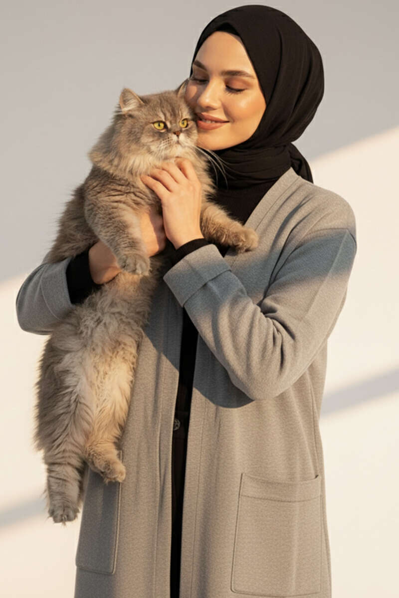 Basic Çift Cepli Uzun Triko Hırka Füme
