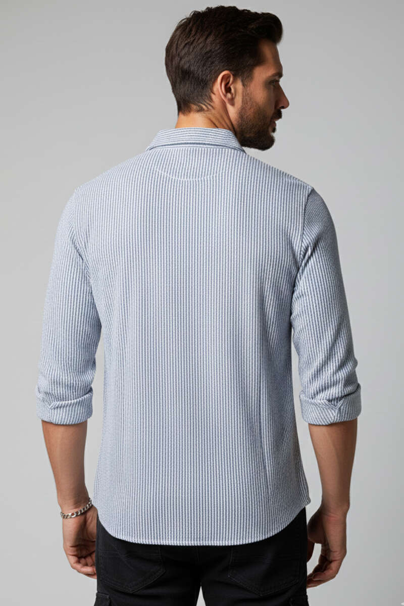 Çizgili Bilek Manşetli Erkek Gömlek Füme