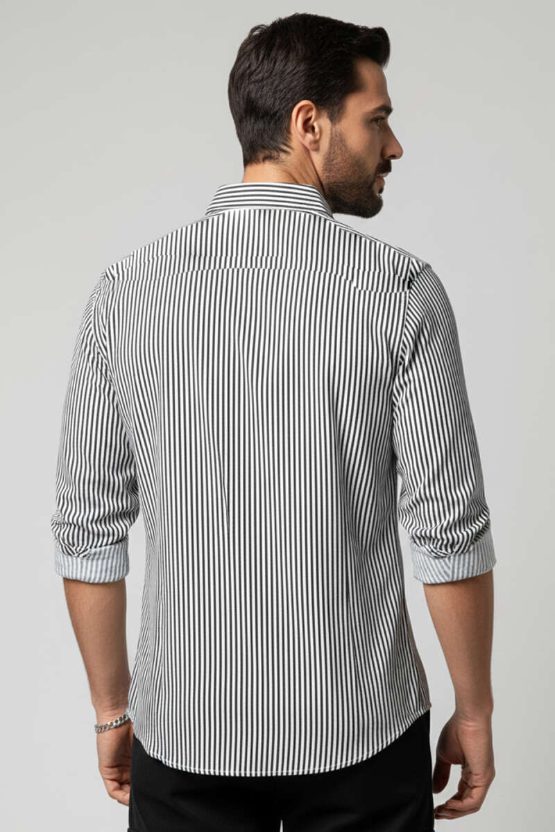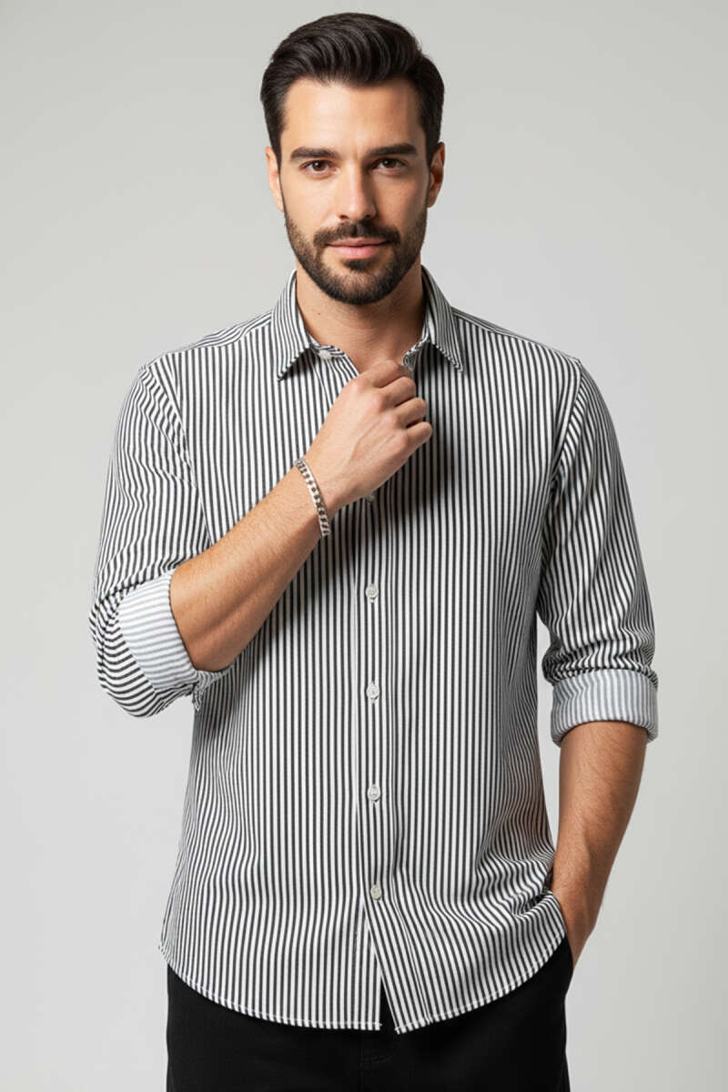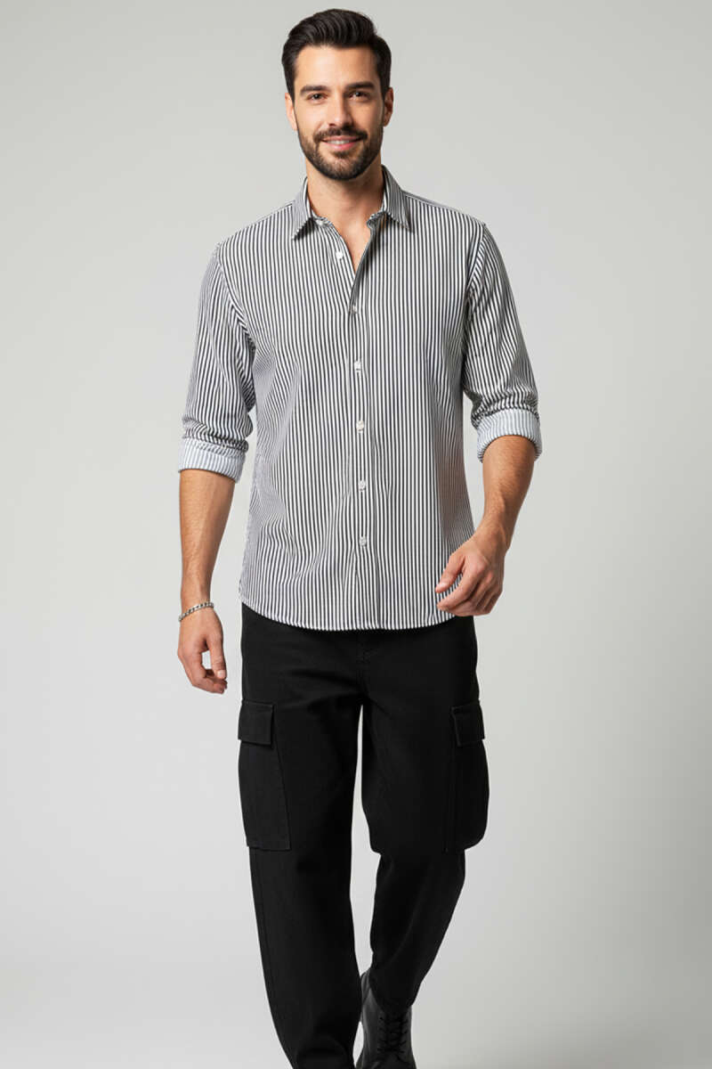 Çizgili Bilek Manşetli Erkek Gömlek Füme