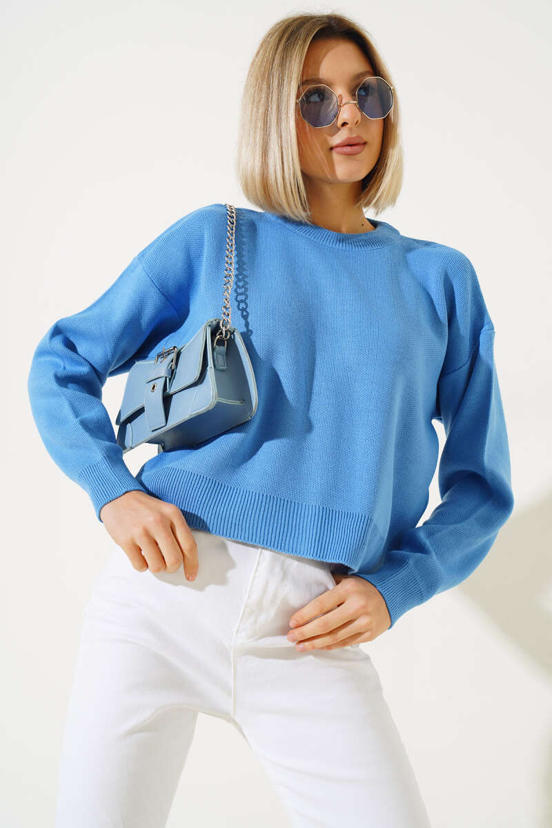 Basic Crop Triko Kazak Kahve