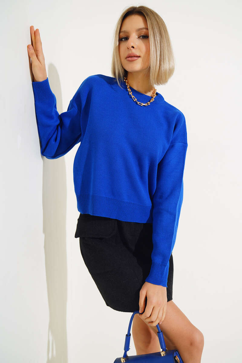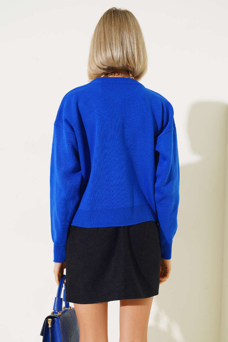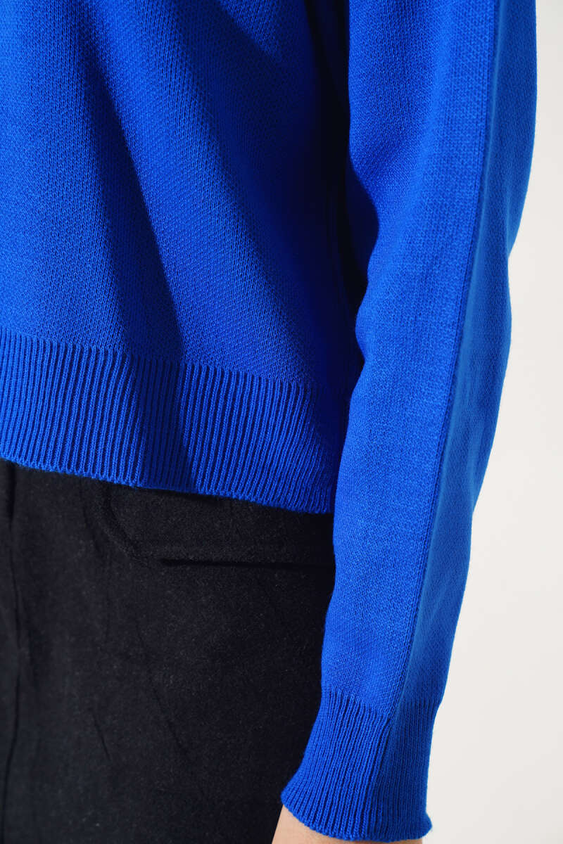 Uzun Kollu Yarım Fermuarlı Bluz Mavi