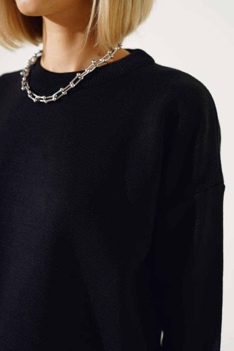 Basic Crop Triko Kazak Lacivert
