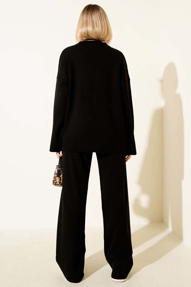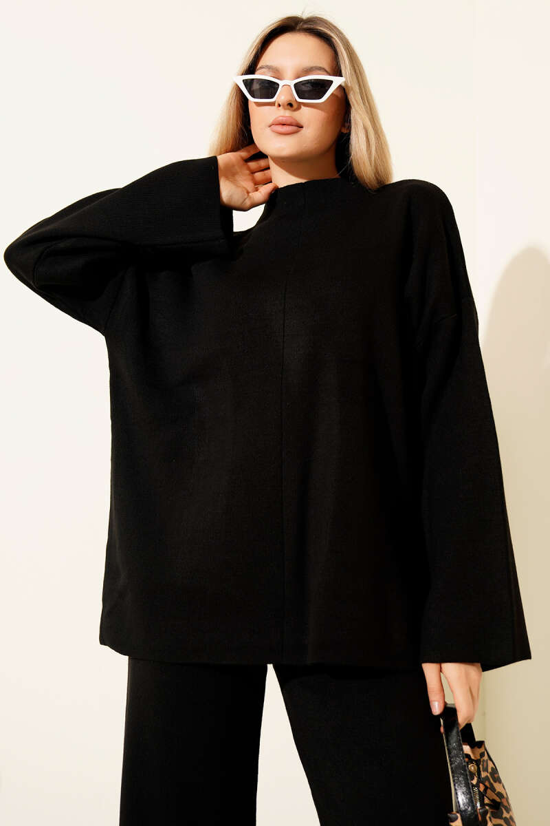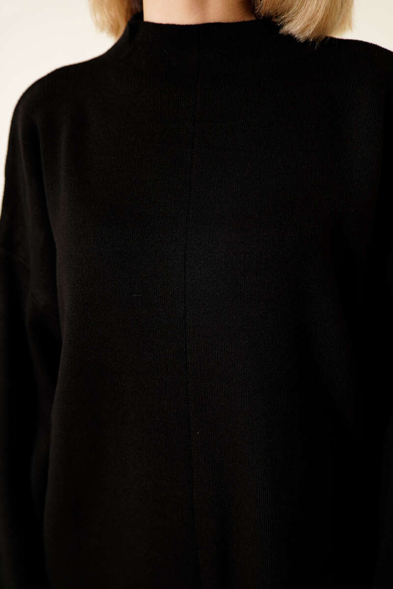 Düşük Kol Detaylı Triko Tunik Siyah