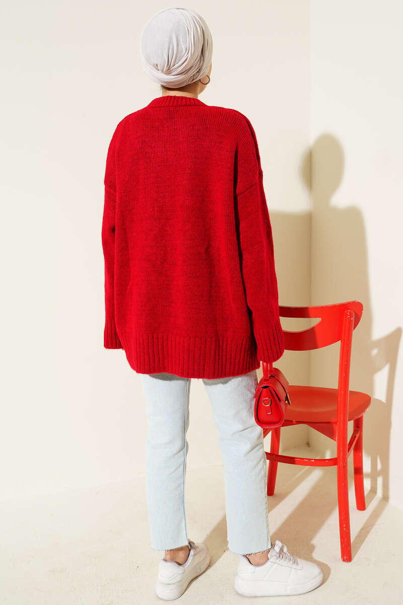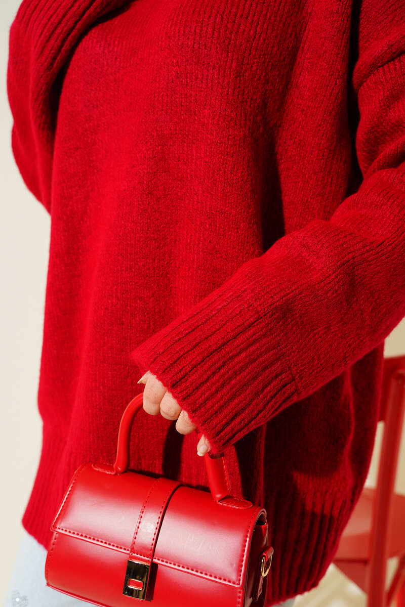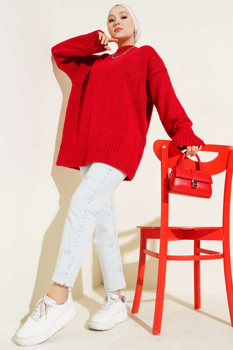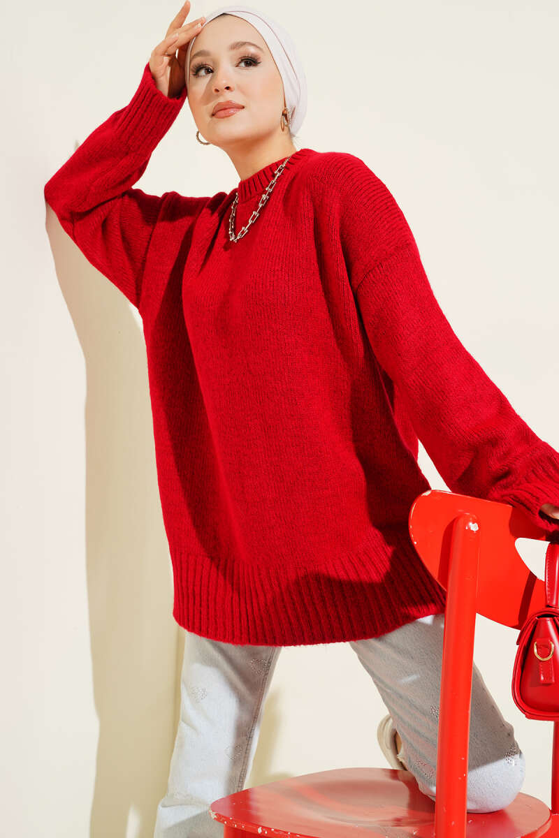Balon Kol Dik Yaka Triko Tunik Gül Kurusu