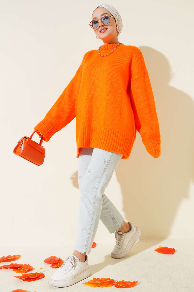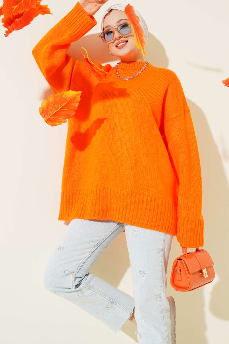 Yan Yırtmaçlı Yumoş Triko Kazak Pembe