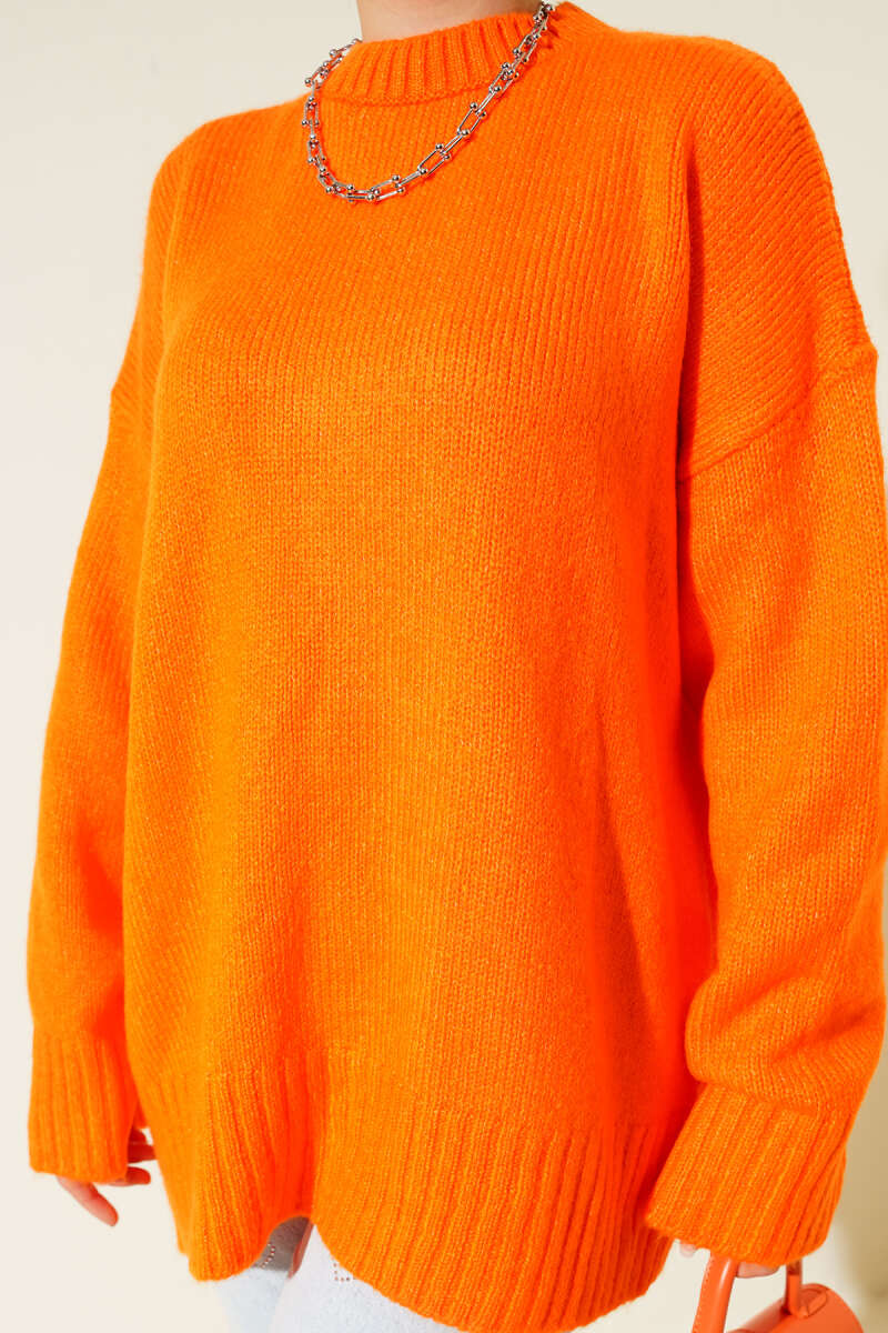 Yan Yırtmaçlı Yumoş Triko Kazak Sarı