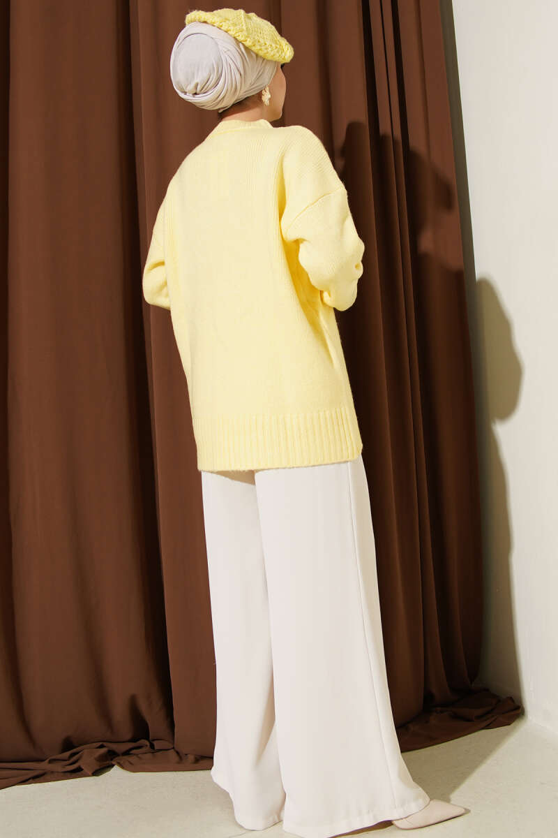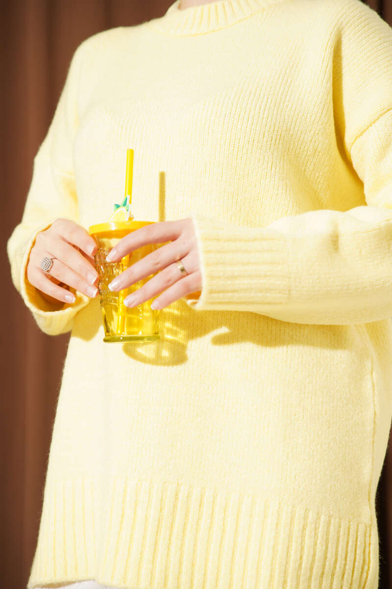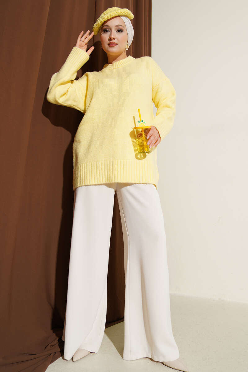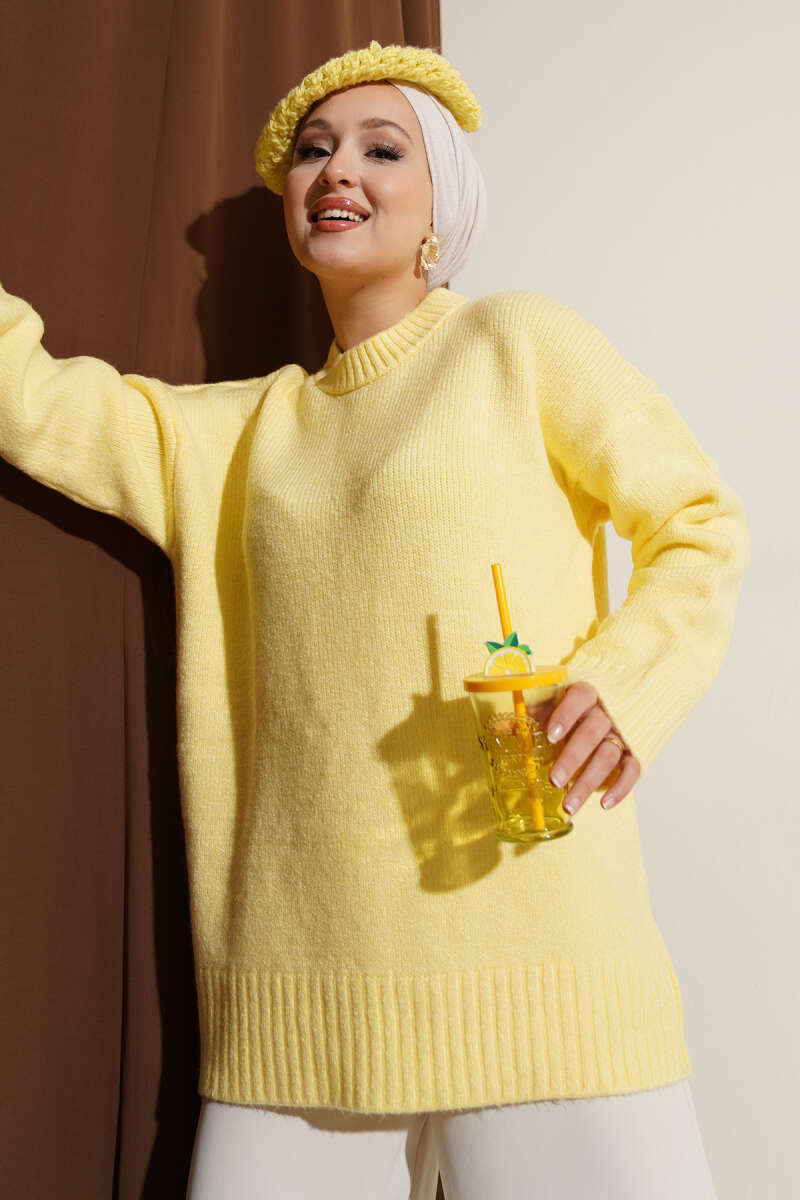 Basic Dikey Çizgi Detaylı Triko Kazak Sarı