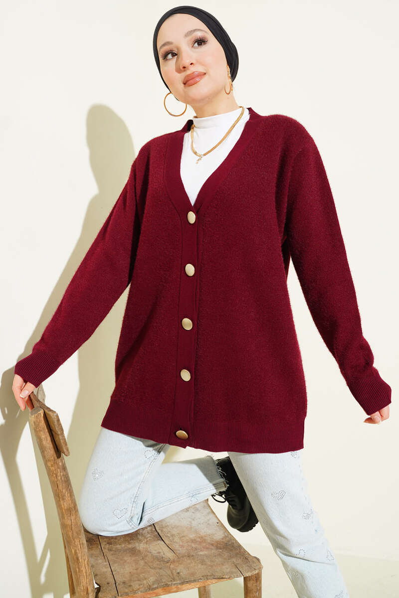 Basic Düğme Detaylı Triko Hırka Kahve