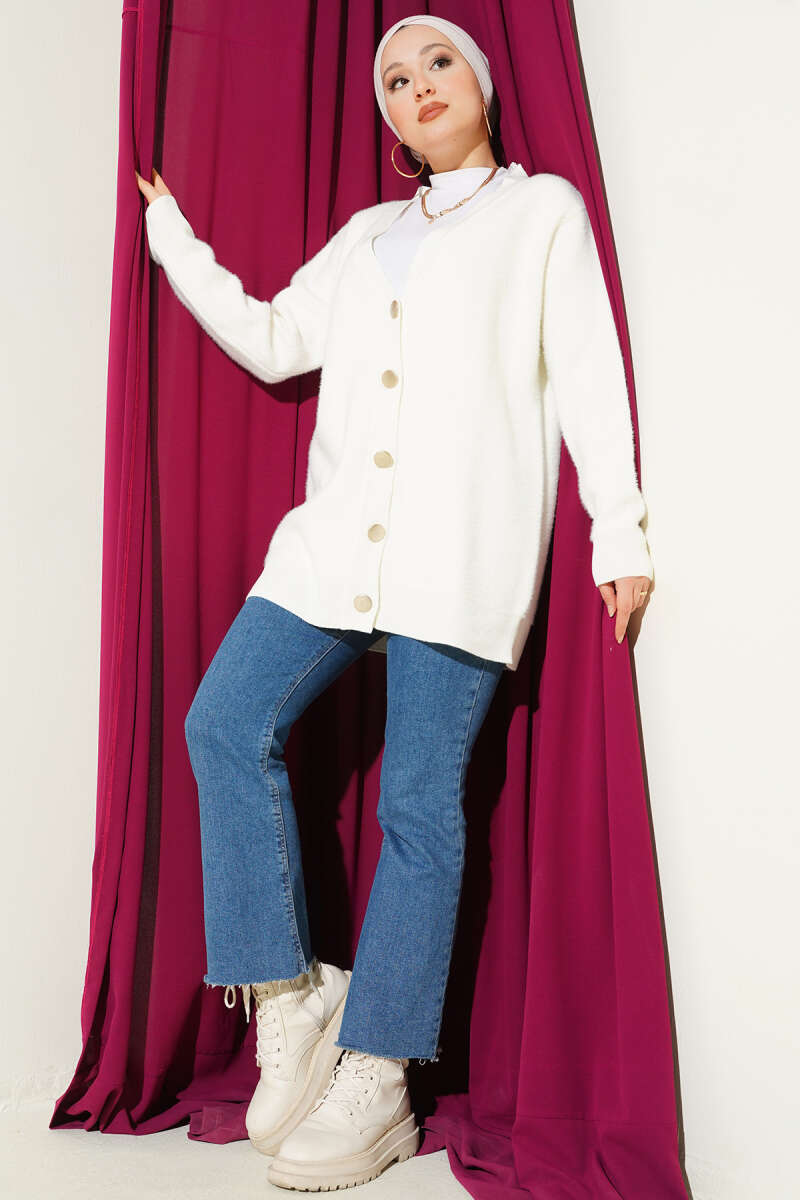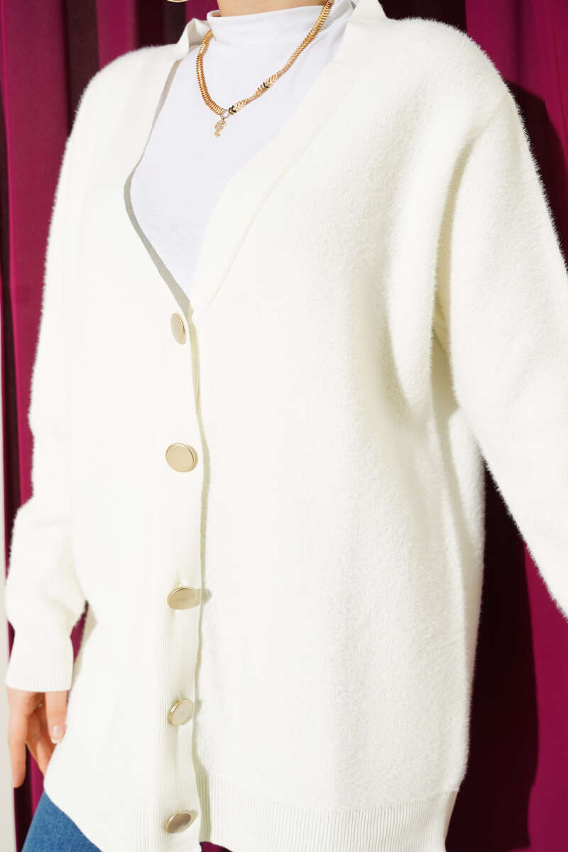 Basic Düğme Detaylı Triko Hırka Kahve