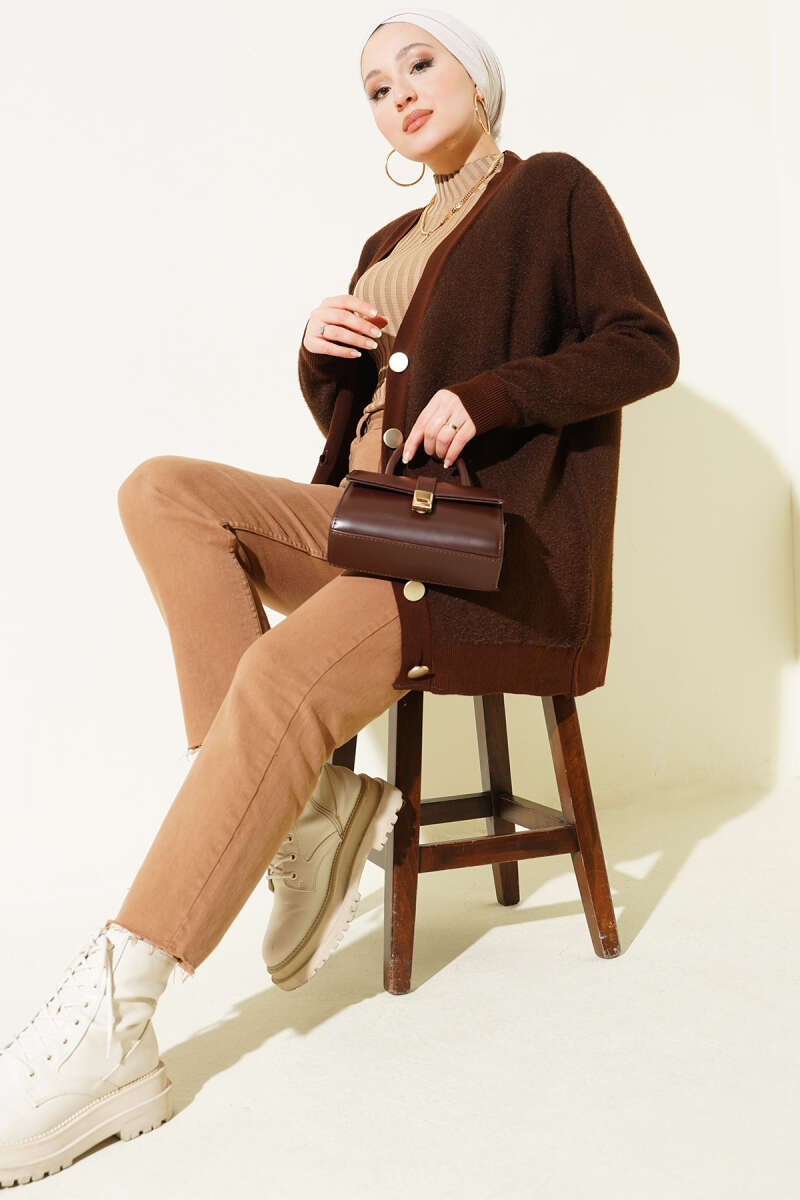 Bilek Kürklü Çıtçıtlı Body Kahve