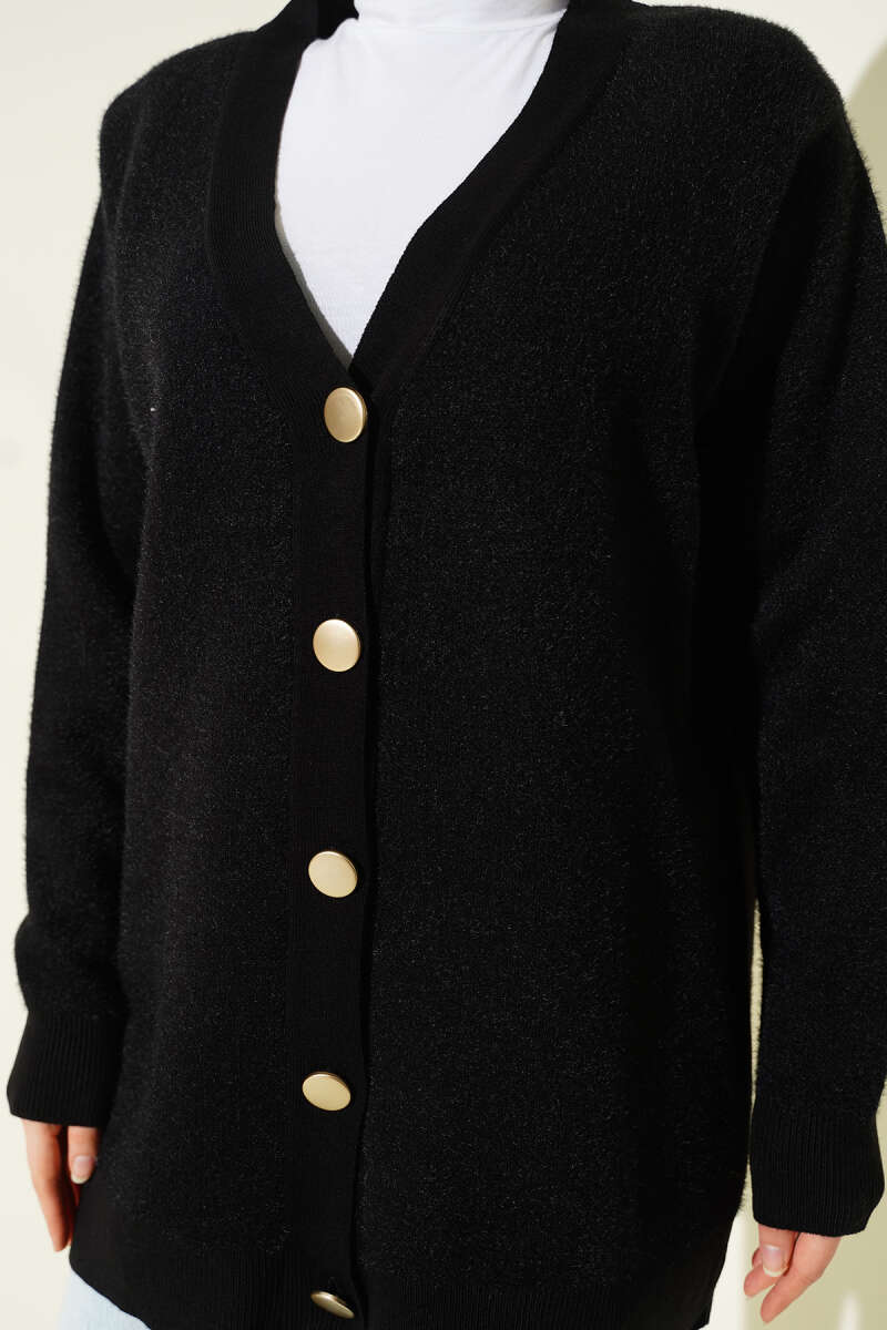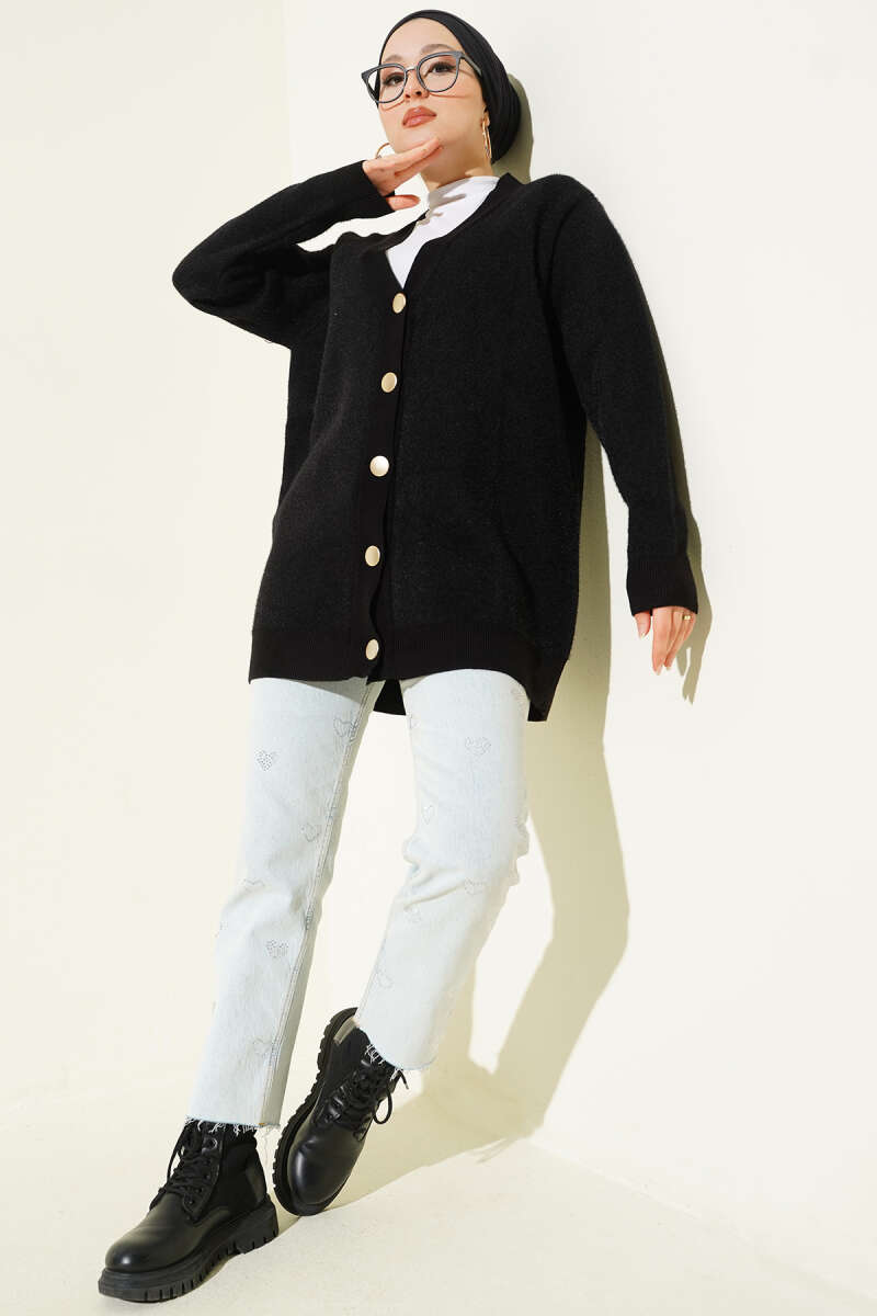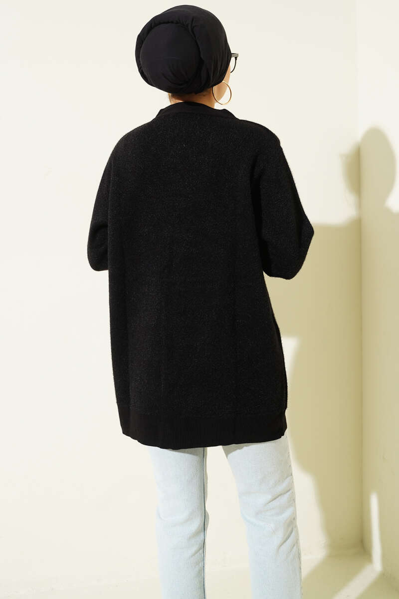 Bisiklet Yaka Sakal Detaylı Kazak Siyah