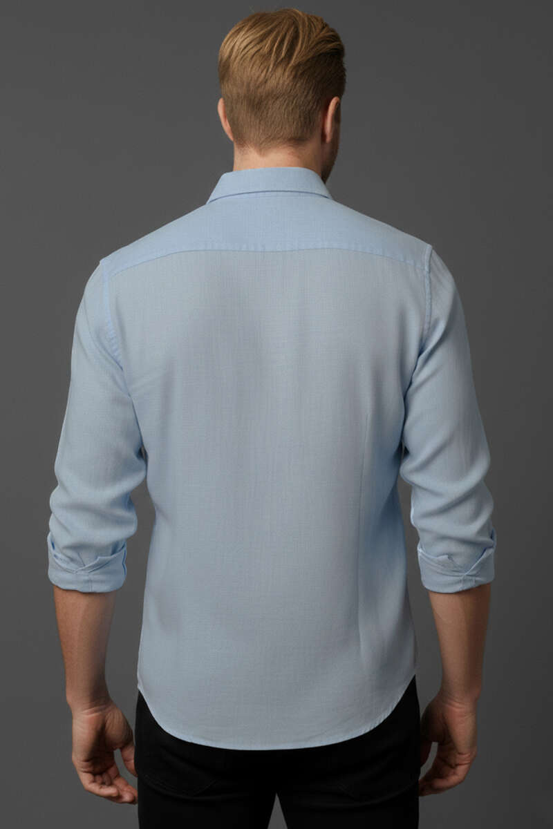 Slim Fit Pamuk Saten Erkek Gömlek Mavi