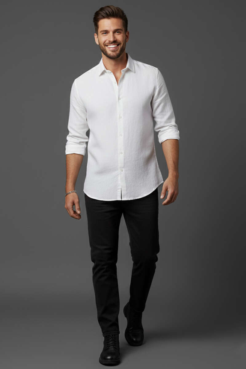 Slim Fit Pamuk Saten Erkek Gömlek Siyah