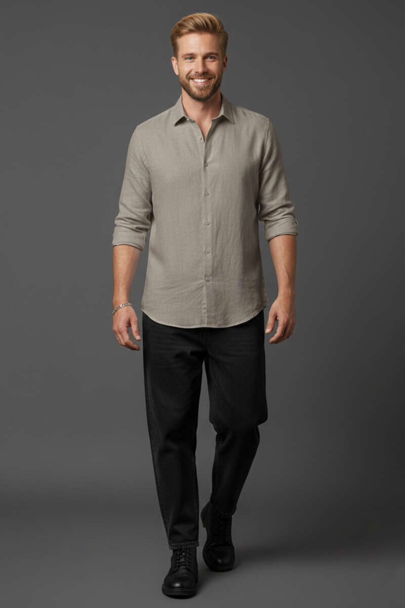 Basic Erkek Keten Gömlek Siyah