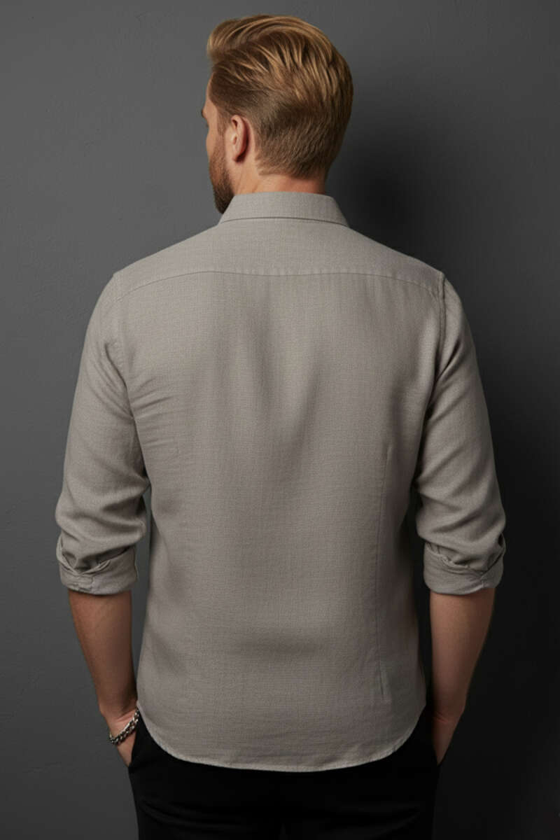 Slim Fit Pamuk Saten Erkek Gömlek Gri