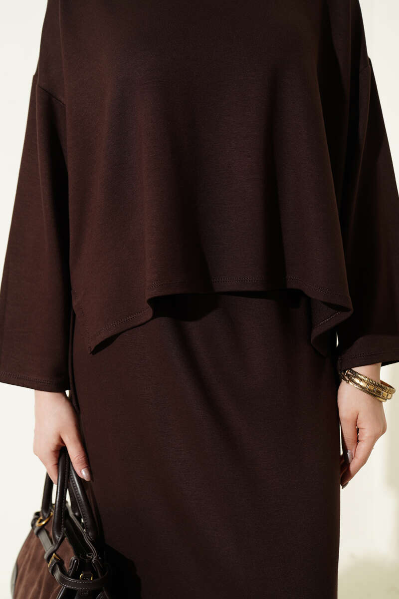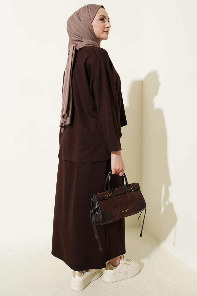 Taş İşlemeli Keten İkili Takım Kahve