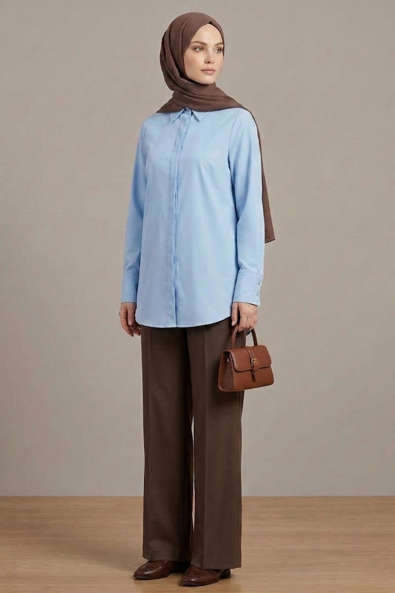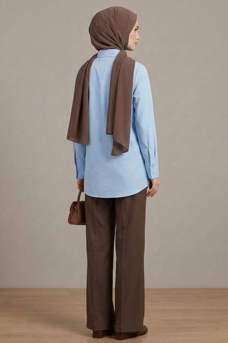 Çift Yaka İp Kuşaklı Gömlek Kahve