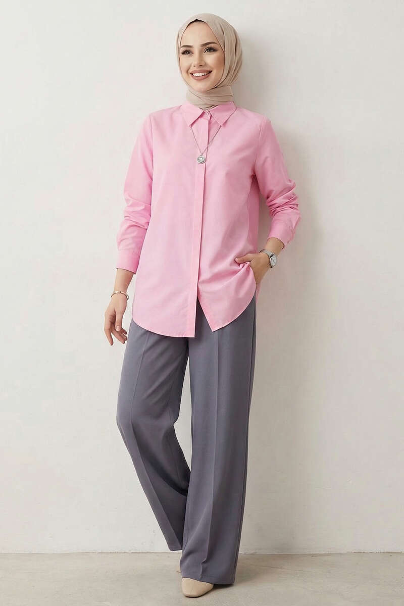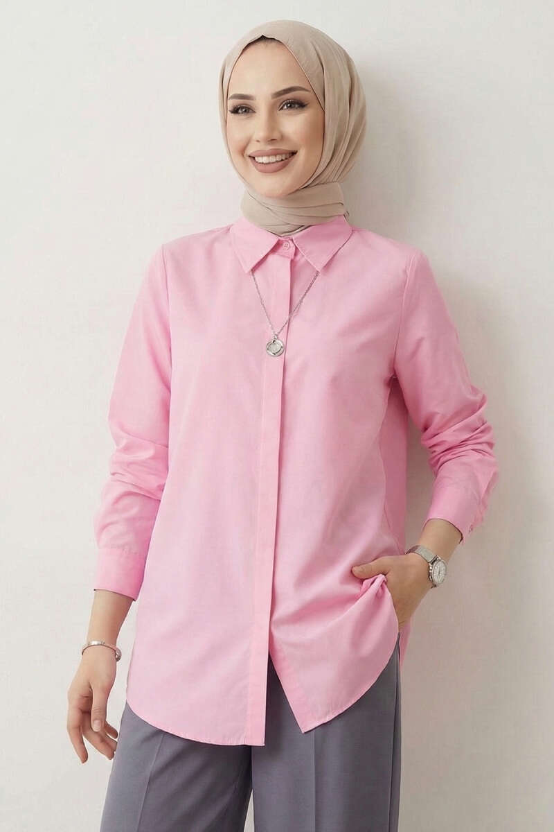 Basic Gizli Düğmeli Gömlek Pembe