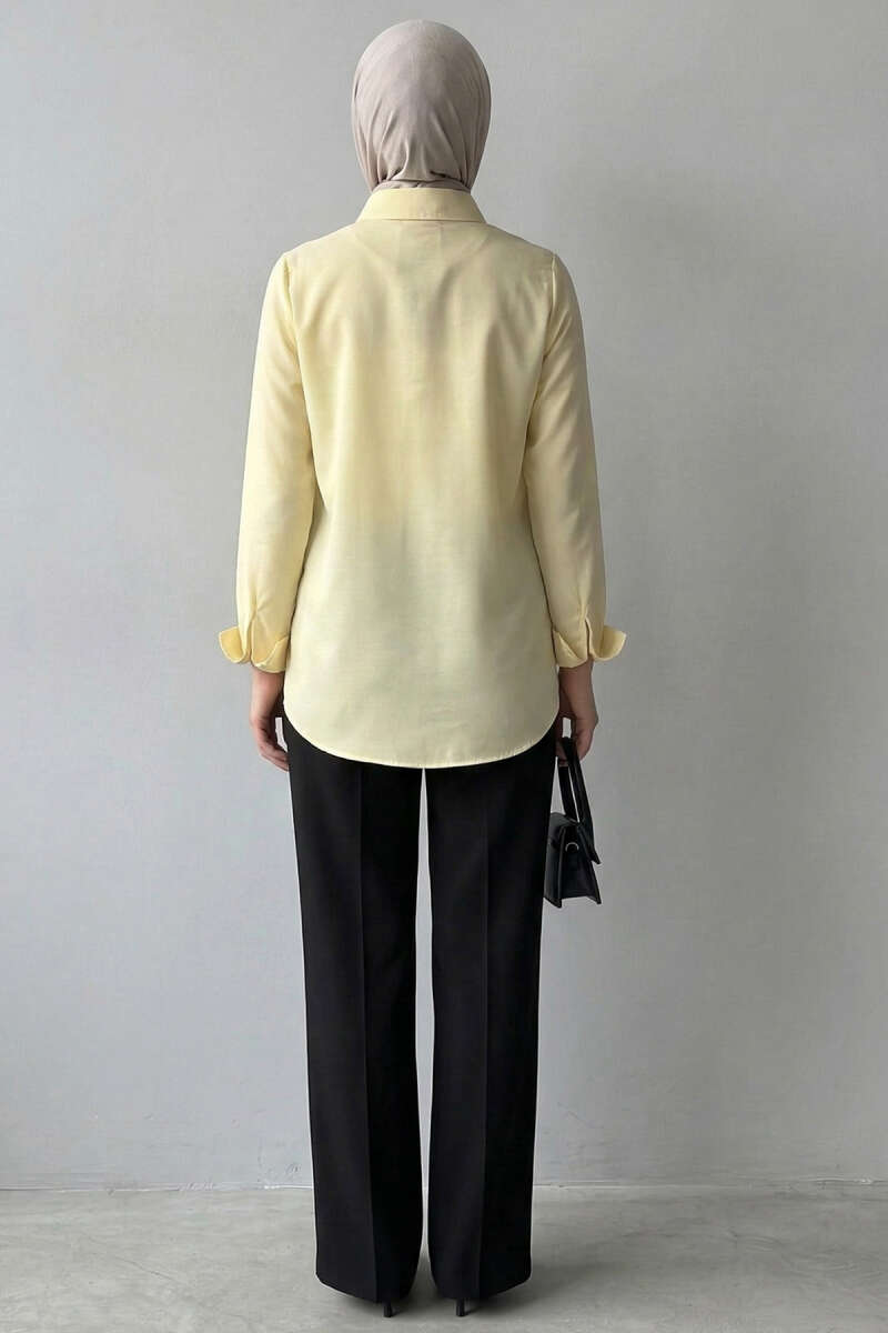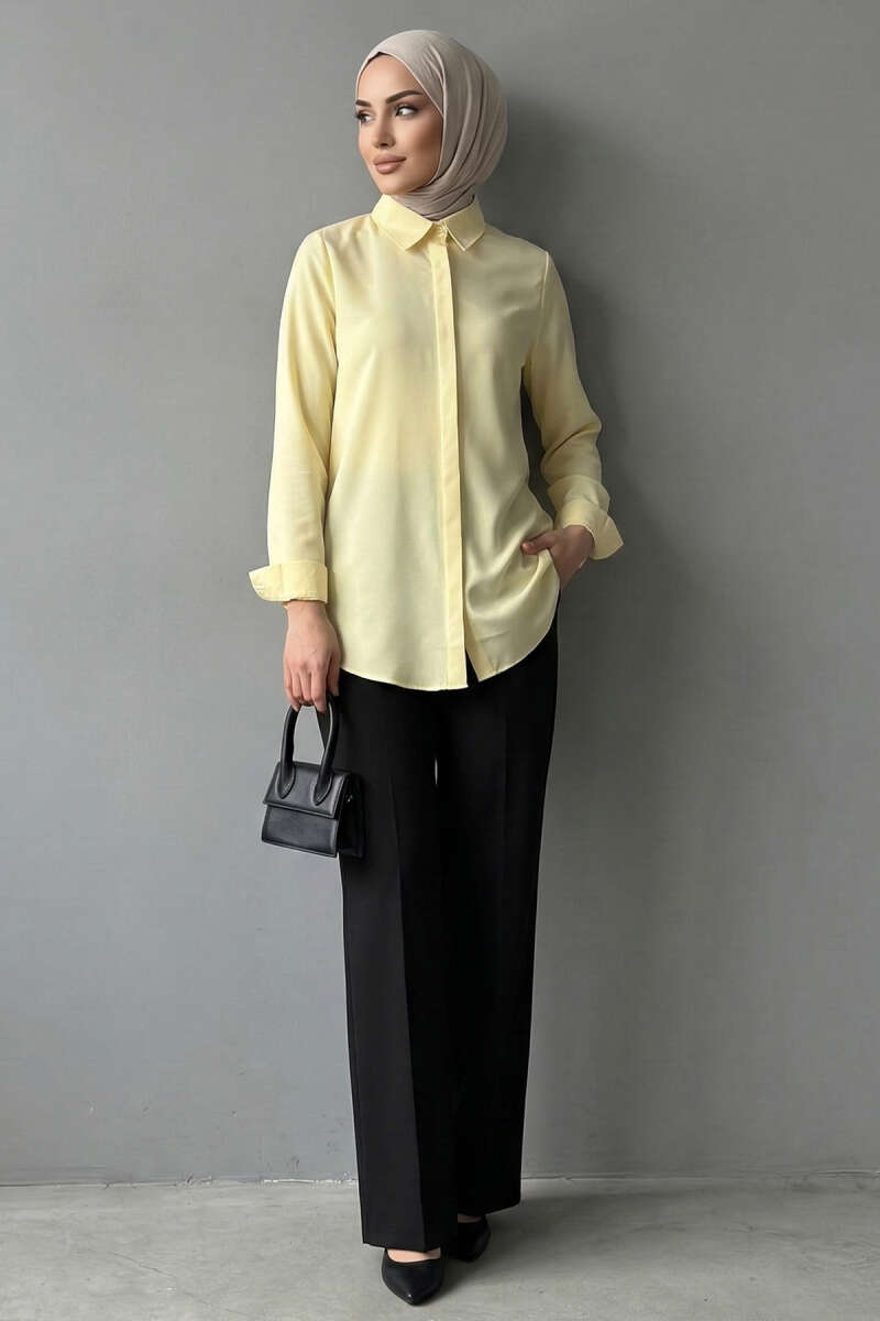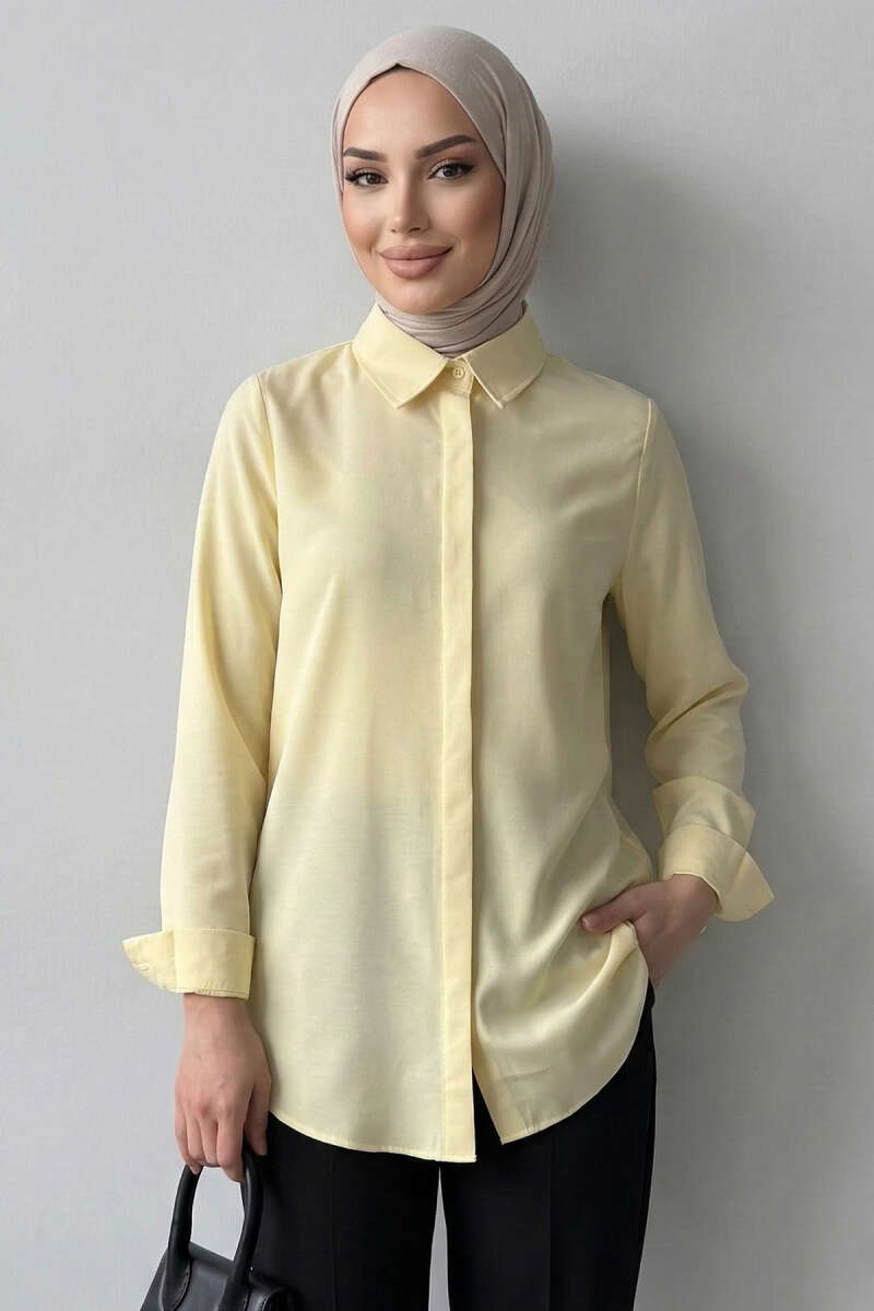 Basic Gizli Düğmeli Gömlek Sarı